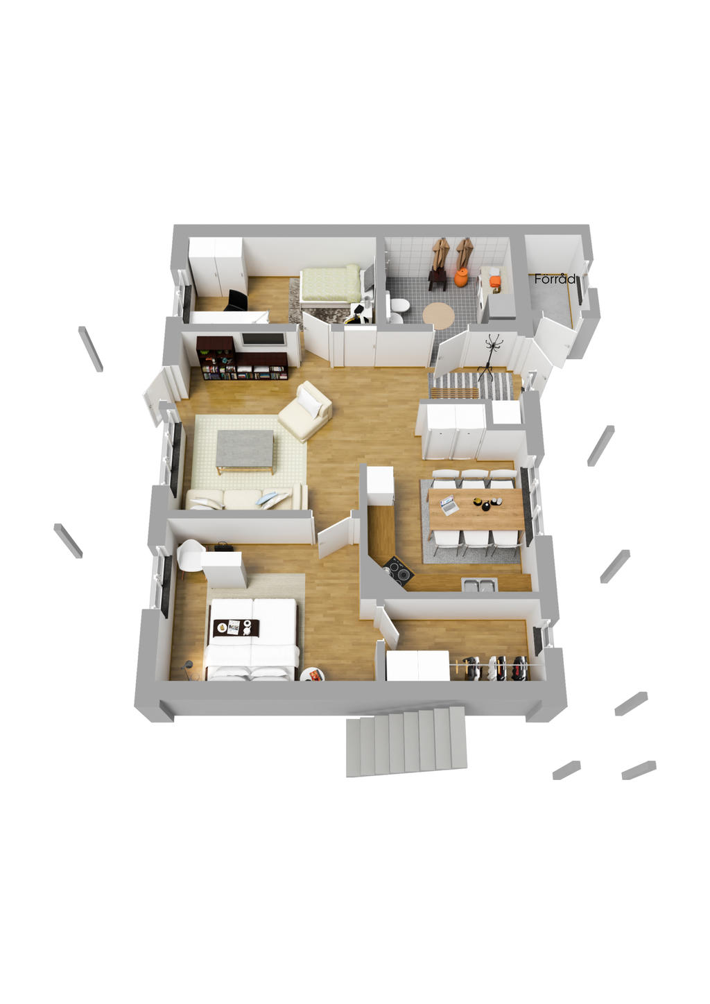 Mycket fin och välplanerad markplanslägenhet med uteplats!