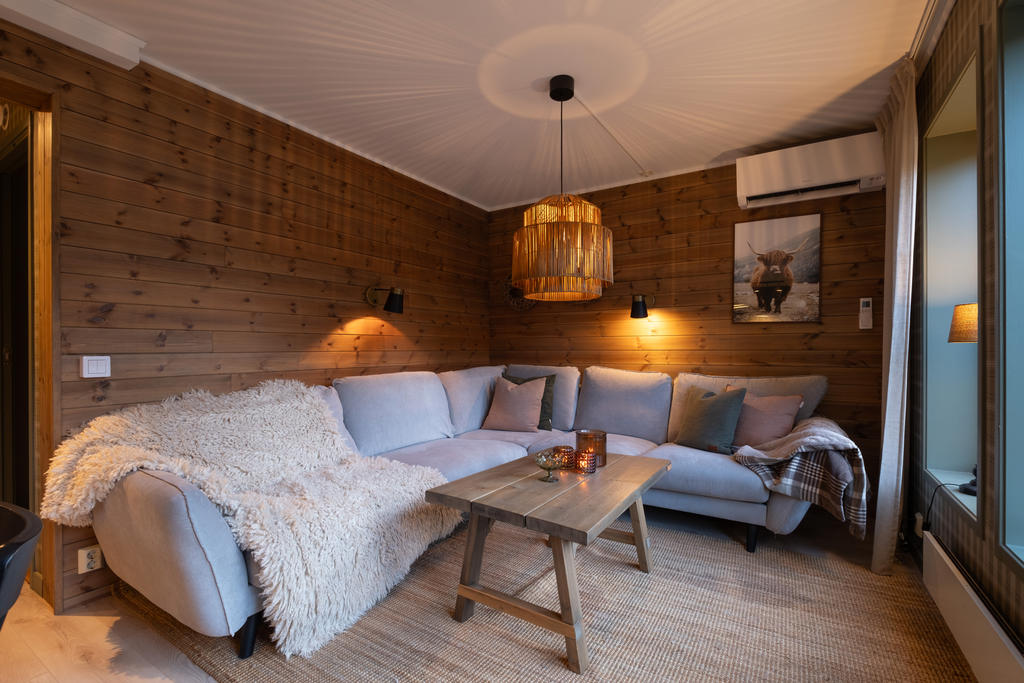 Att den ligger på markplan gör att det är smidigt och bekvämt för både stora och små gäster att ta sig in och ut. Närheten till skidbackar, butiker, cykelleder, längdskidåkningsspår och restauranger gör att både den friluftsintresserade och finsmakaren kan njuta fullt ut. Det geografiska läget gör att lägenheten är en pärla både sommar- och vintertid.