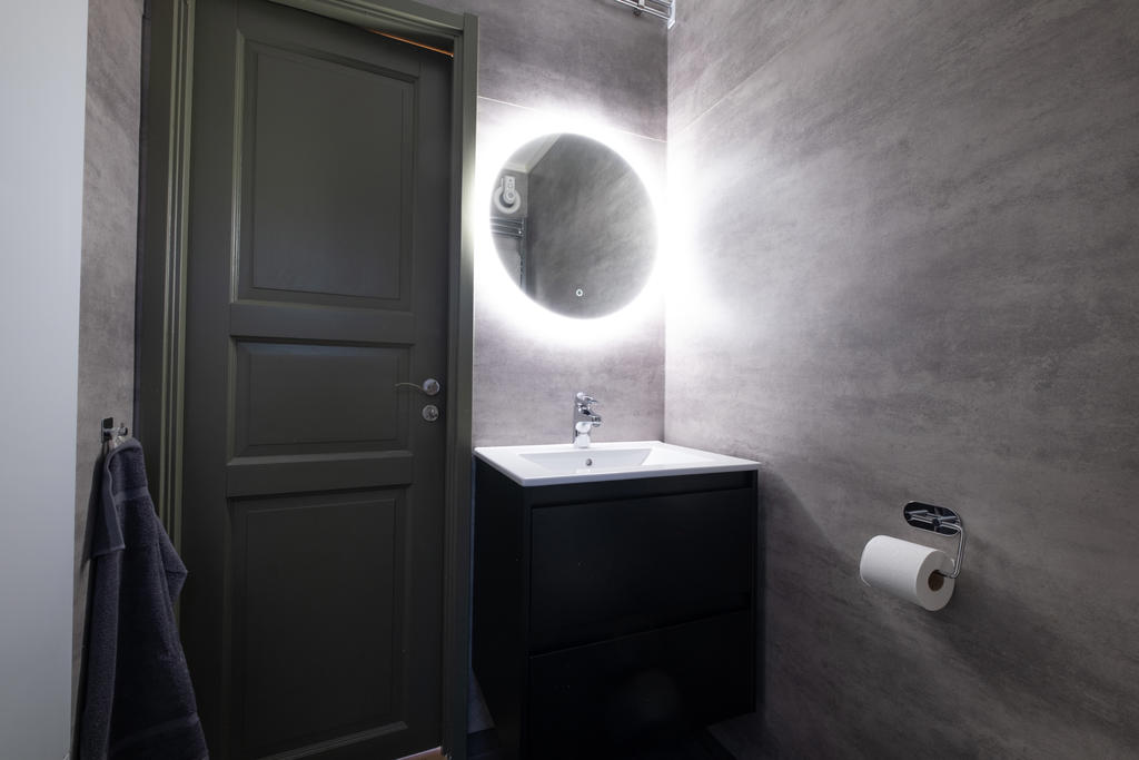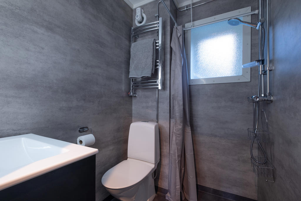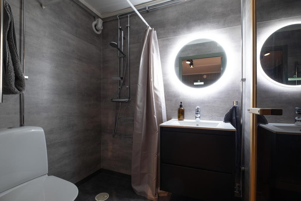 De båda badrummen är smakfullt renoverade och det finns dusch och wc i båda. I det större finns även bastu som ger extra guldkant och värmande avkoppling.