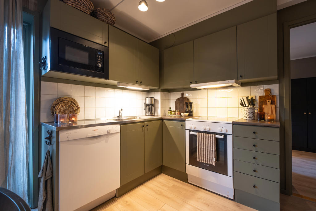 Köket håller modern standard med genomgående fina materialval som sammanvävs med matplats. Tillsammans skapar de utrymme för att umgås medan sovrummen ger rofyllda miljöer för återhämtning. Bostadens tre sovrum erbjuder hela 10 (+2)bäddar. I Masterbedrrom finns dubbelsäng och gott om förvaringsmöjlighet i garderober. Vidare finns två sovrum möblerade med en våningssängar samt en familjesäng i vardera.