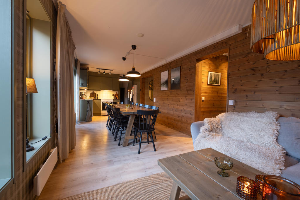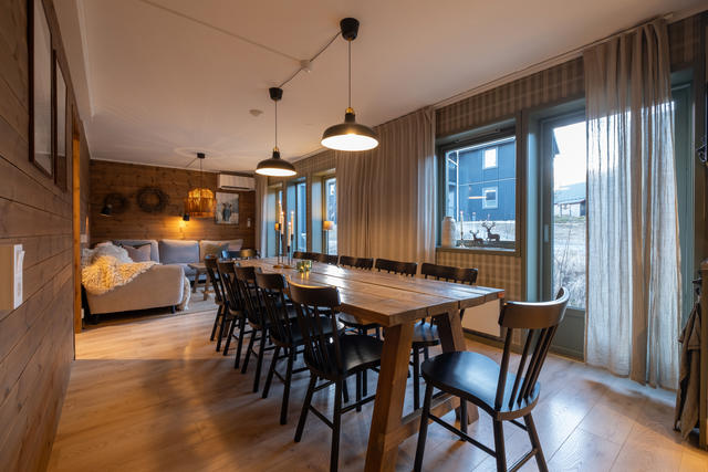 Med genomtänkt planlösning och trevliga sociala utrymmen bjuder detta fjällboende in till både gemenskap och avkoppling efter en dag i backen eller på fjället. Materialvalen är tidlösa och funktionella, skapade för att hålla över tid och ge en genomgående rofylld och genuin fjällkänsla.