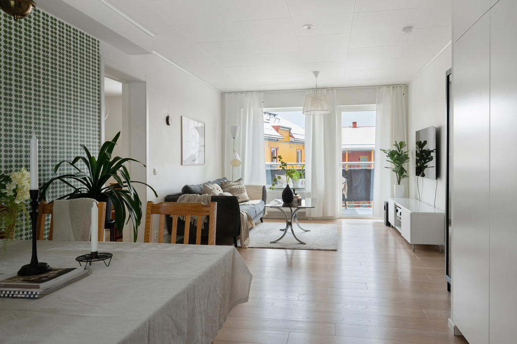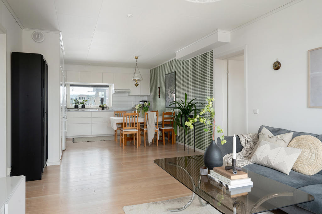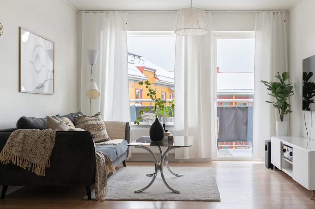 Smakfull trea med solig balkong i Brf Bo Klok Svärdet i Södra Hemlingby!