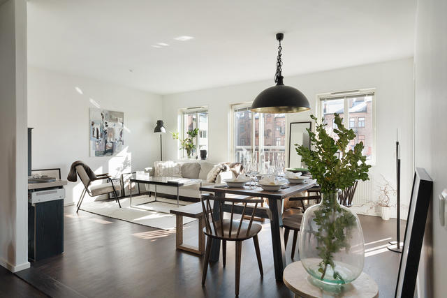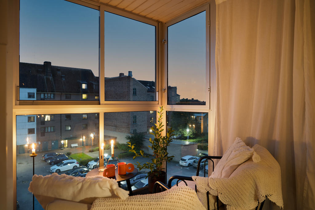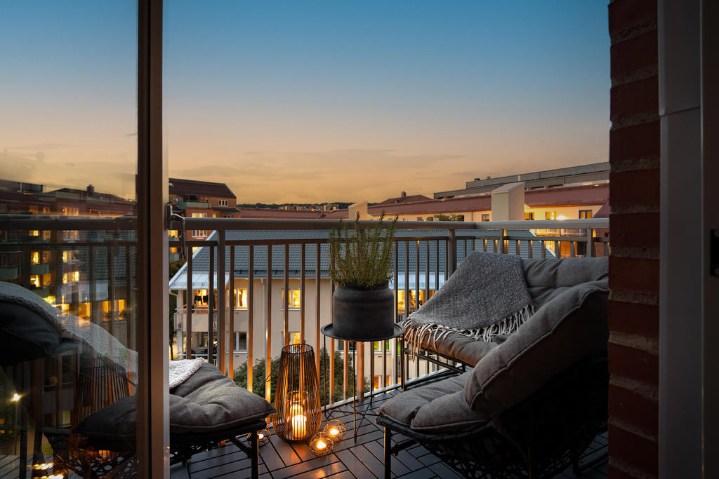 Ett varmt och personligt hem med ljus, rymd och tre balkonger.