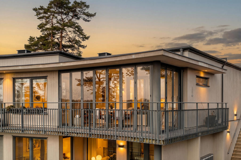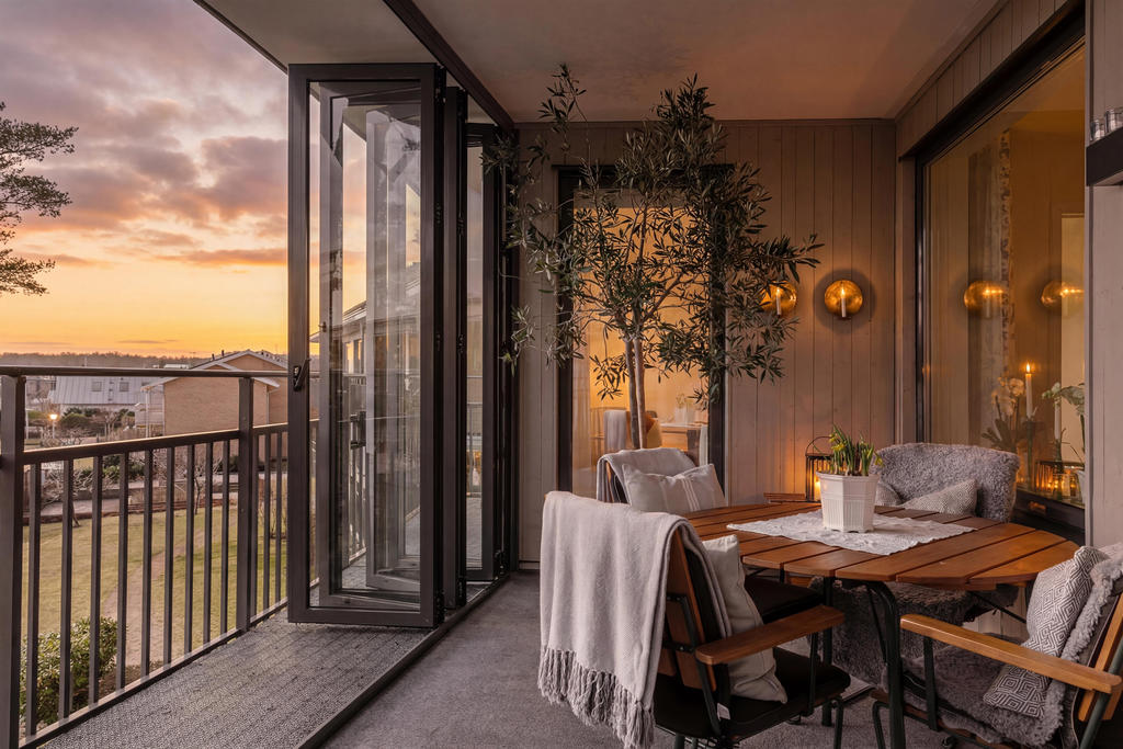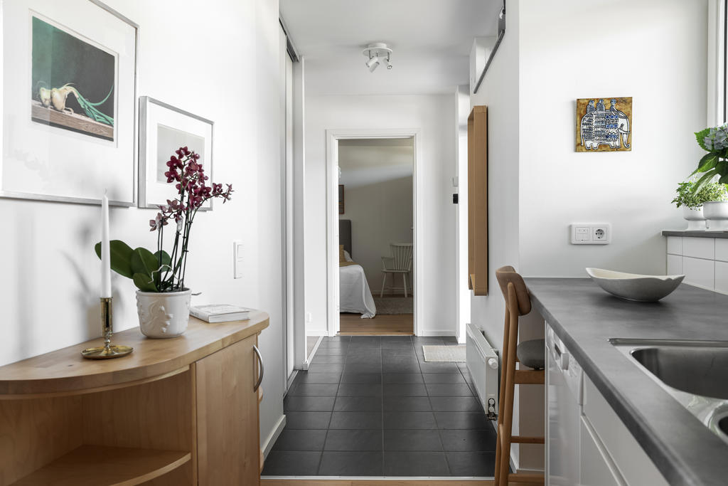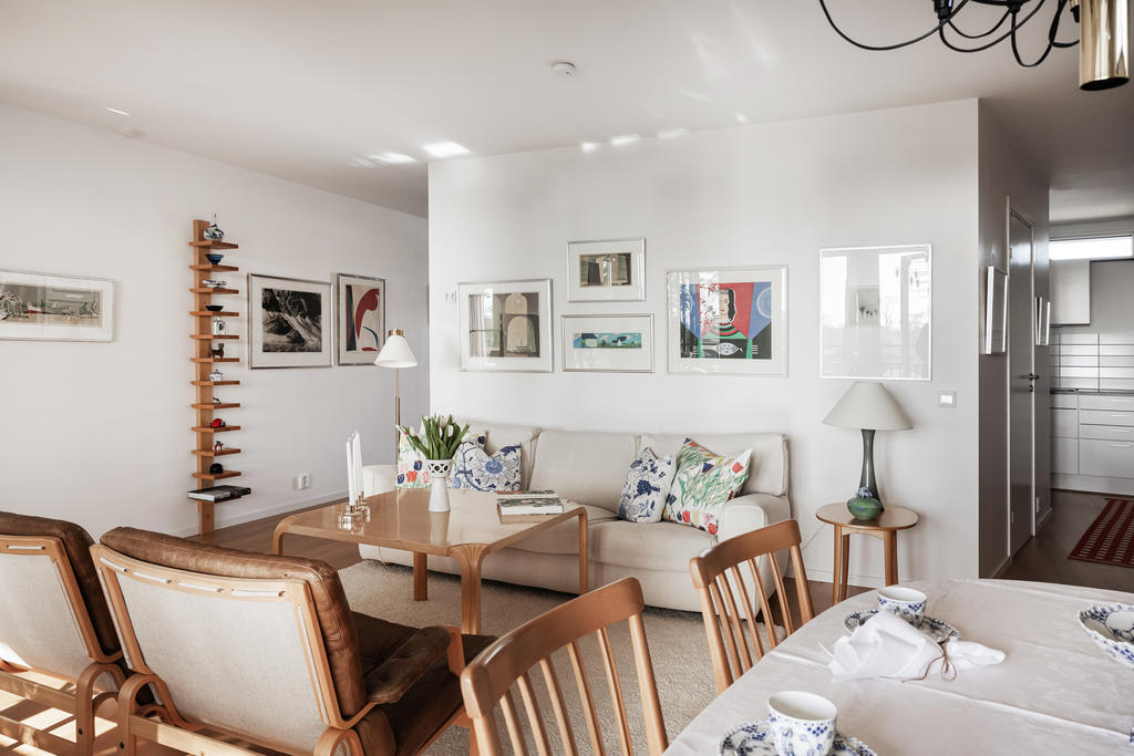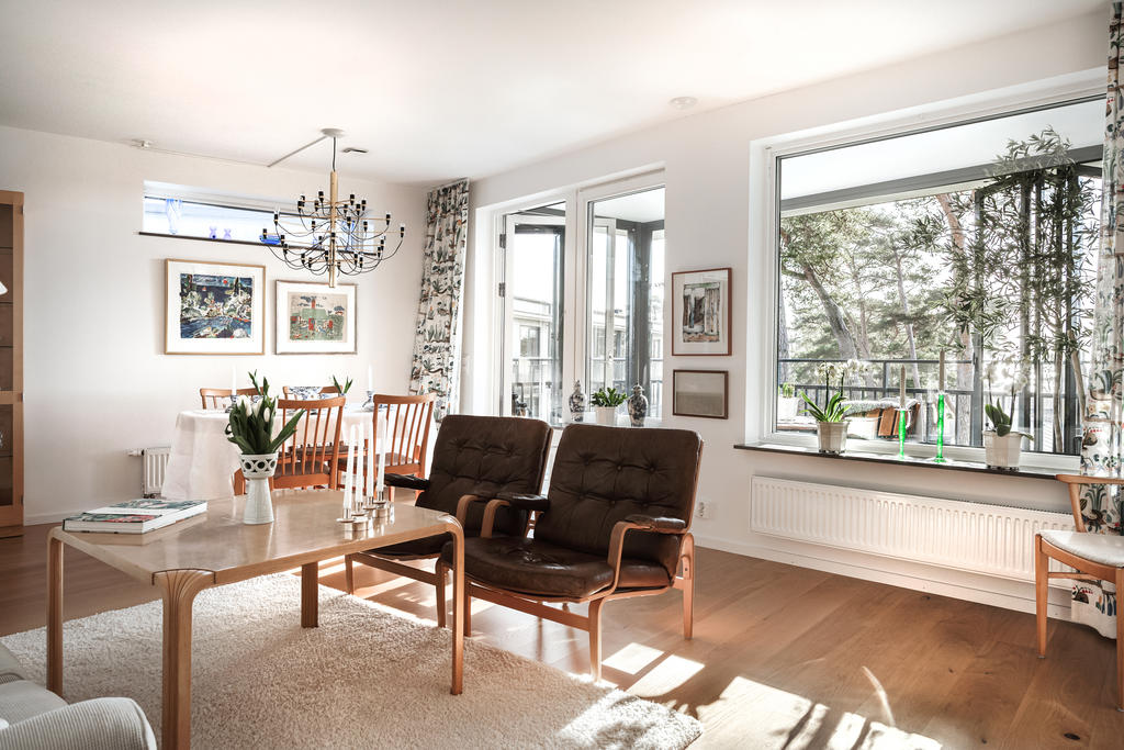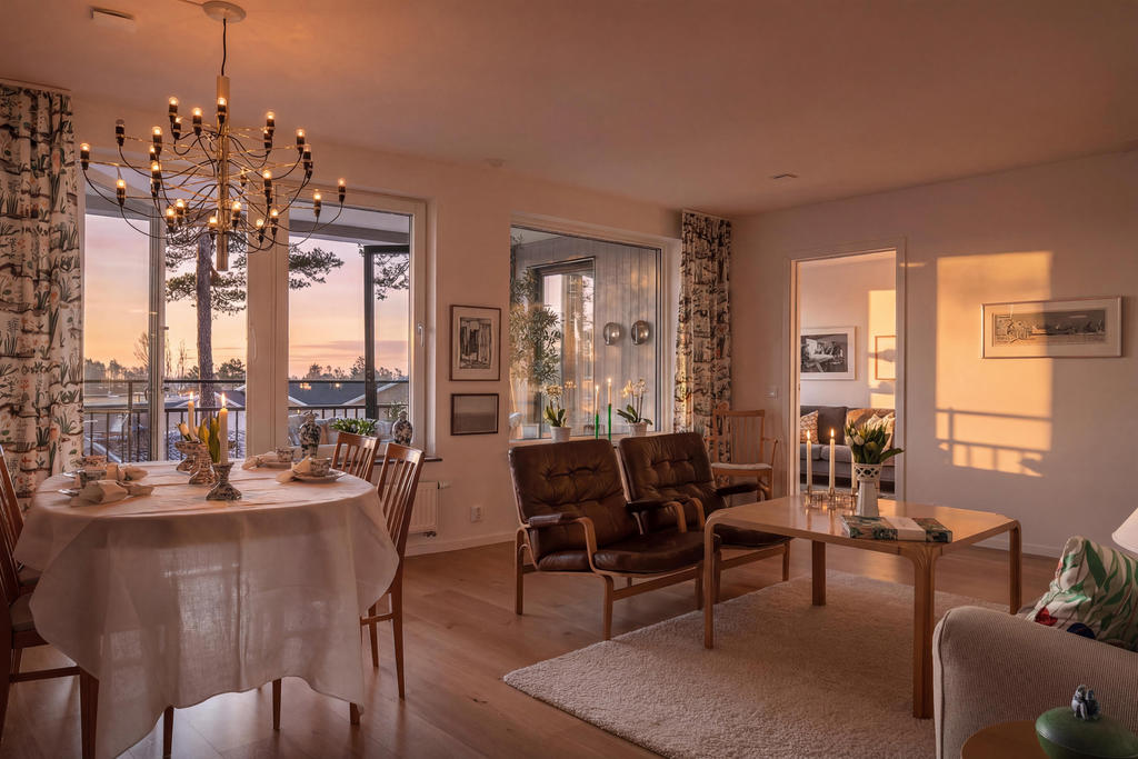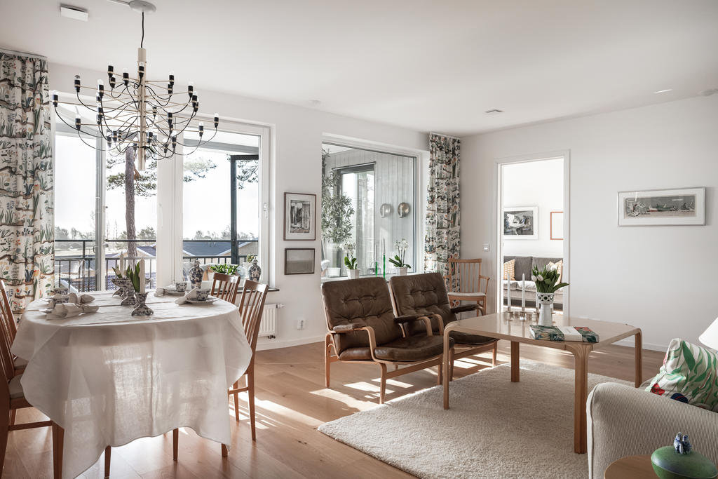Ljus gavellägenhet med utsikt mot havsviken i Stenhuggeriet och BRF Villa Tallvik