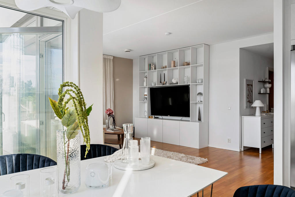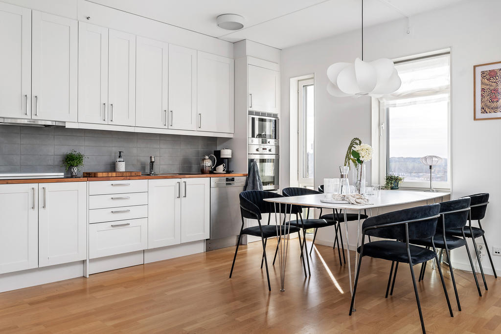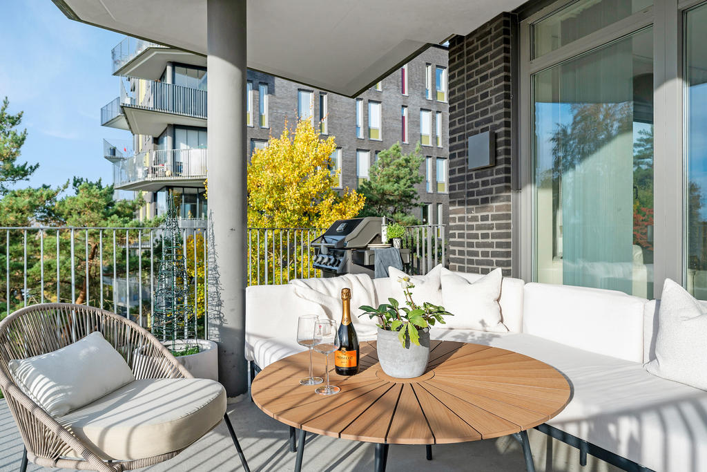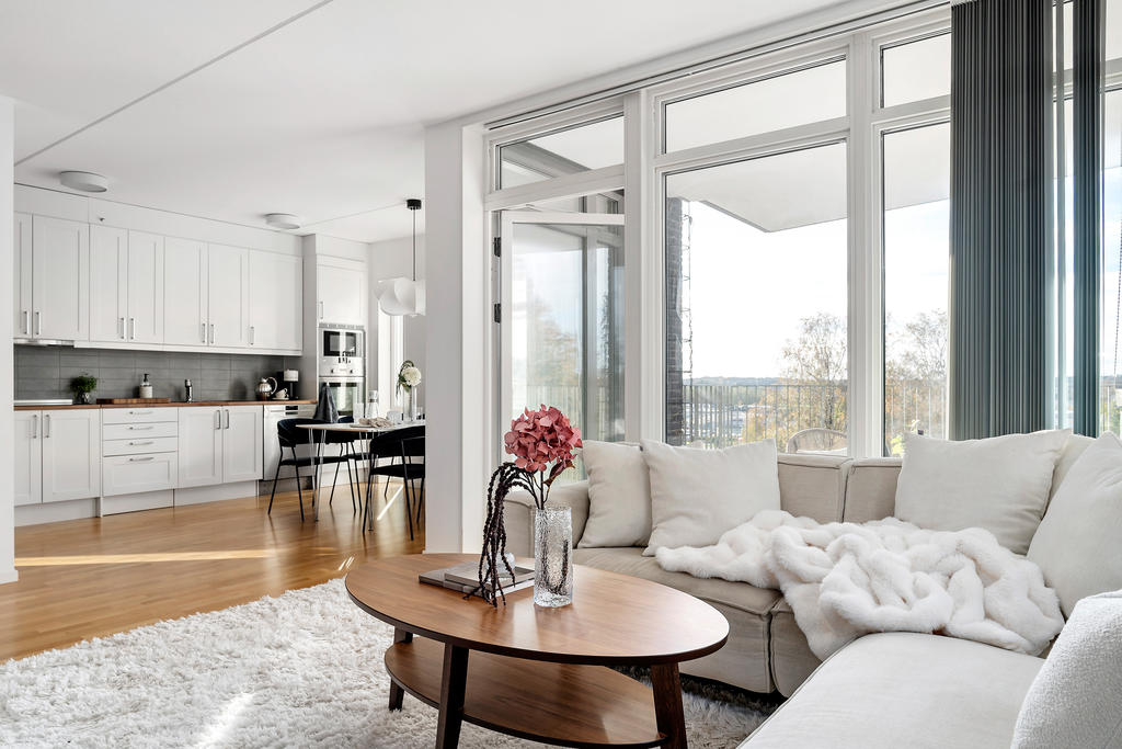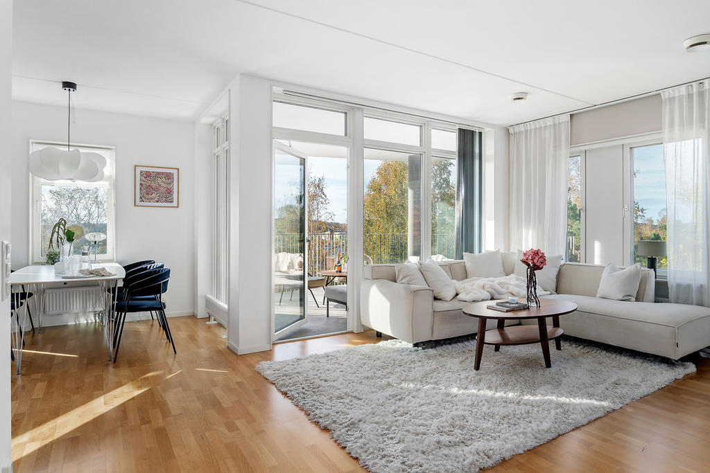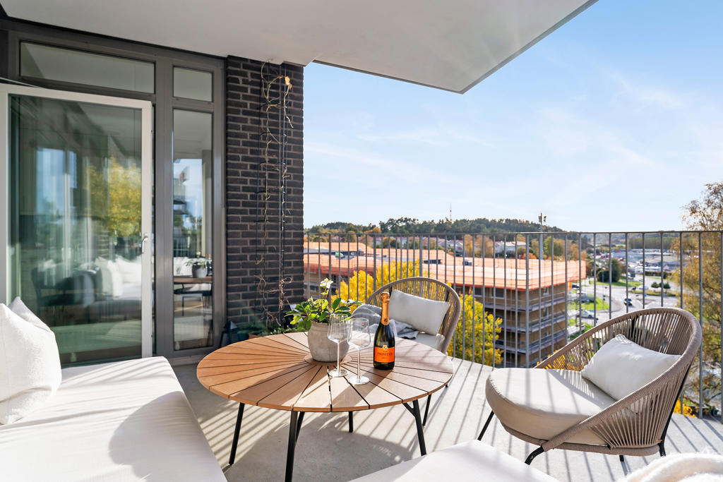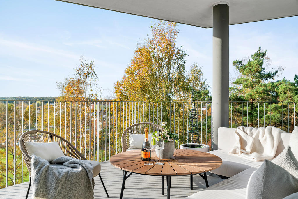 Smakfull trea i högt och fritt läge med stor balkong i sydvästläge!