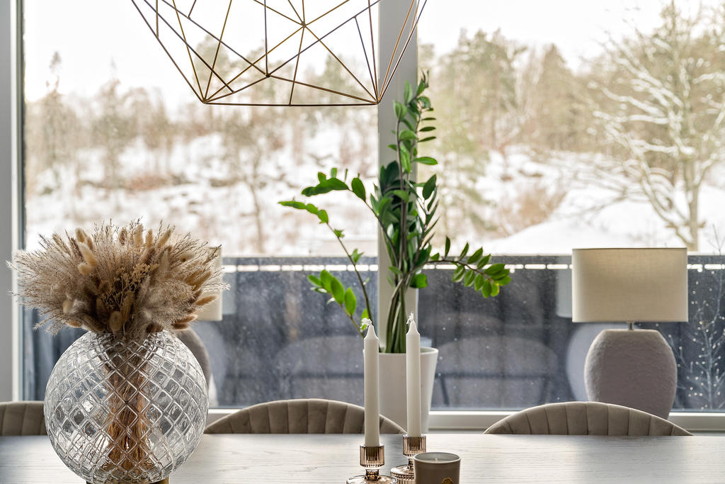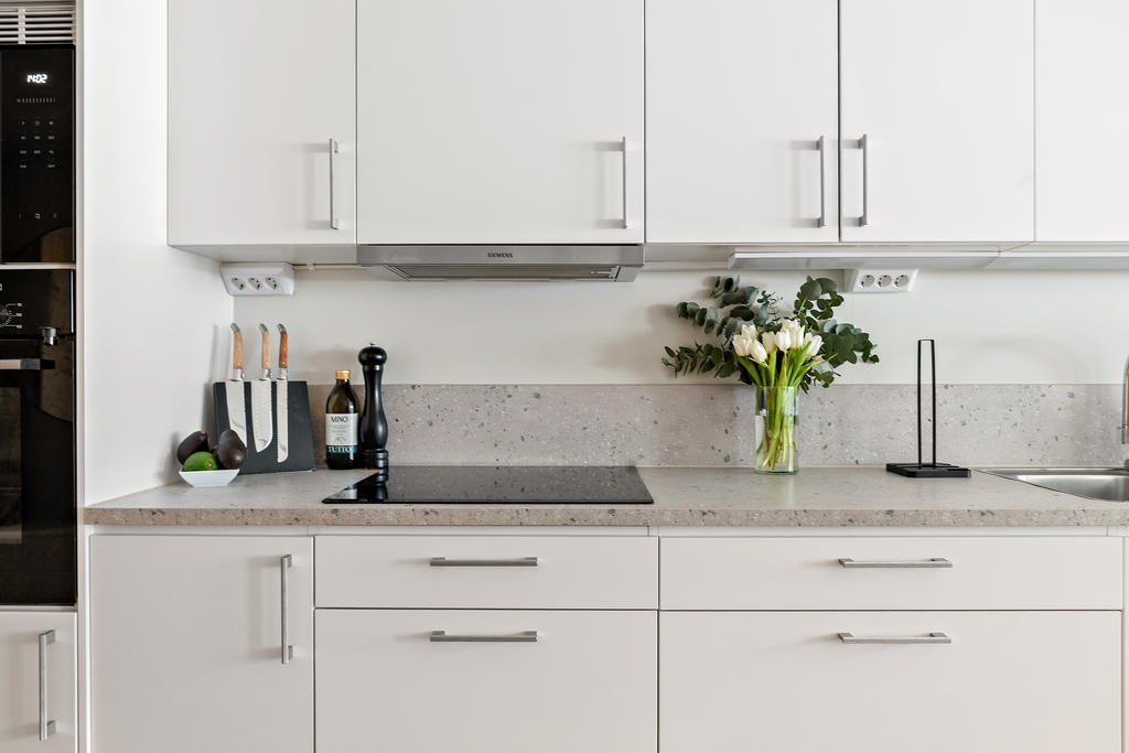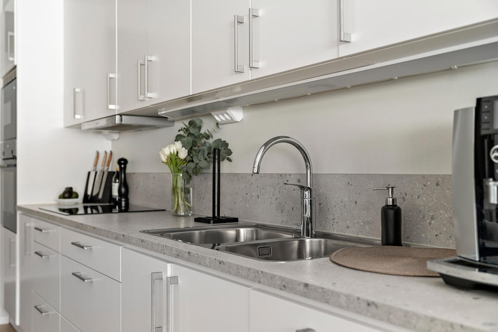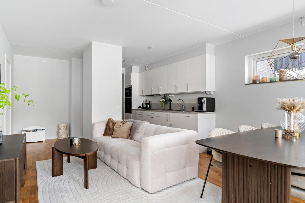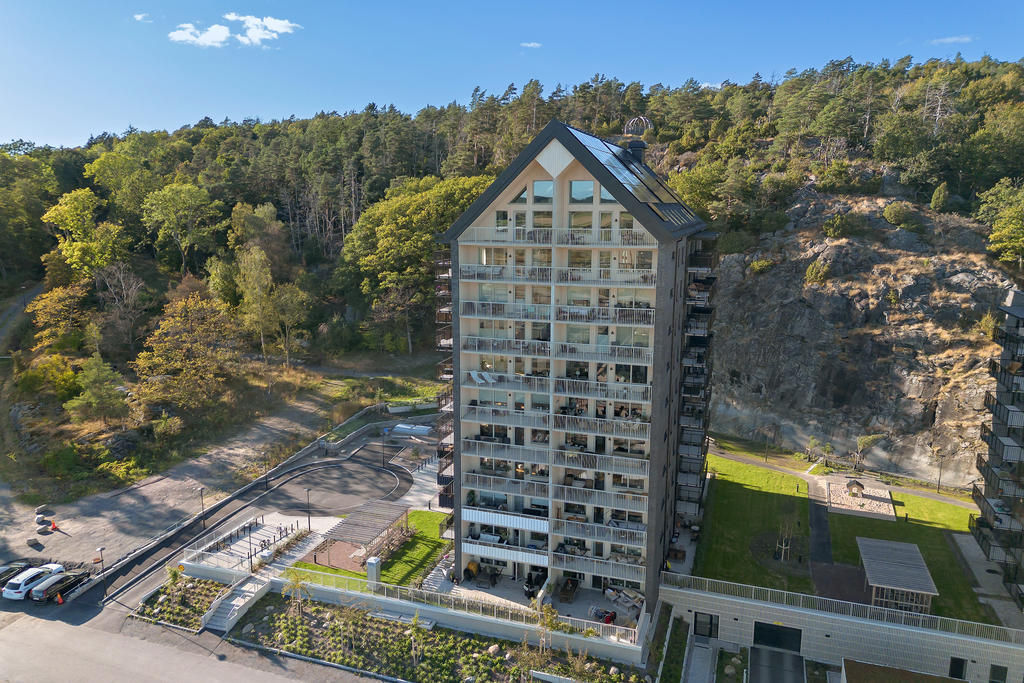 Det stilrena köket tillsammans med vardagsrummet har en öppen planlösning och blir den självklara samlingsplatsen när familj och vänner bjuds hem. Här finns en given plats för matbord som enkelt kan erbjuda plats för ett större sällskap. I vardagsrumsdelen finns plats för soffgrupp och tv-möbel. Hela rummet präglas av ljus och har stora fönsterpartier. Utanför möts ni av de grönskande omgivningarna. Lägenheten är samtidigt helt fri från insyn. Den härliga balkongen är som ett extra rum under sommarhalvåret. Den omges av fin grönska och med trädtopparna i horisonten. Balkongen är placerad med bästa solläge åt sydväst med sol från lunch tills solen går ner bakom trädens toppar sent om kvällarna. Balkongen ger plats för både utemöbler, grill och grönskande växter, helt klart en oas att njuta av.