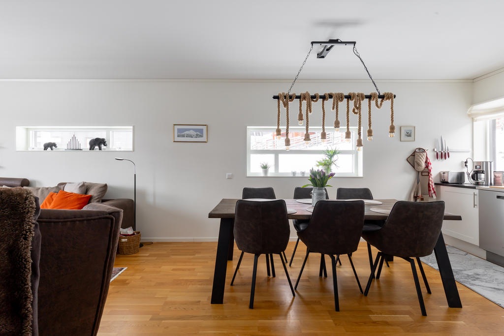 Välplanerad hörnlägenhet på markplan i Nyvallen med utsikt över Renfjället.
