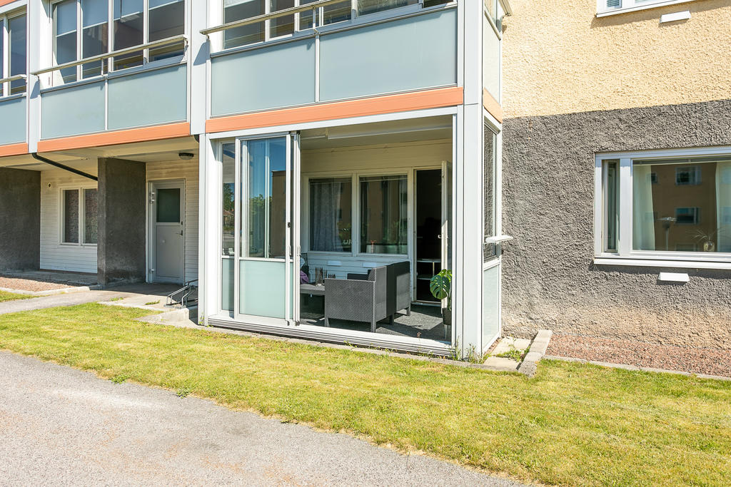 Hörnlägenhet i markplan med inglasad balkong. Ditt första hem eller nästa drömboende!