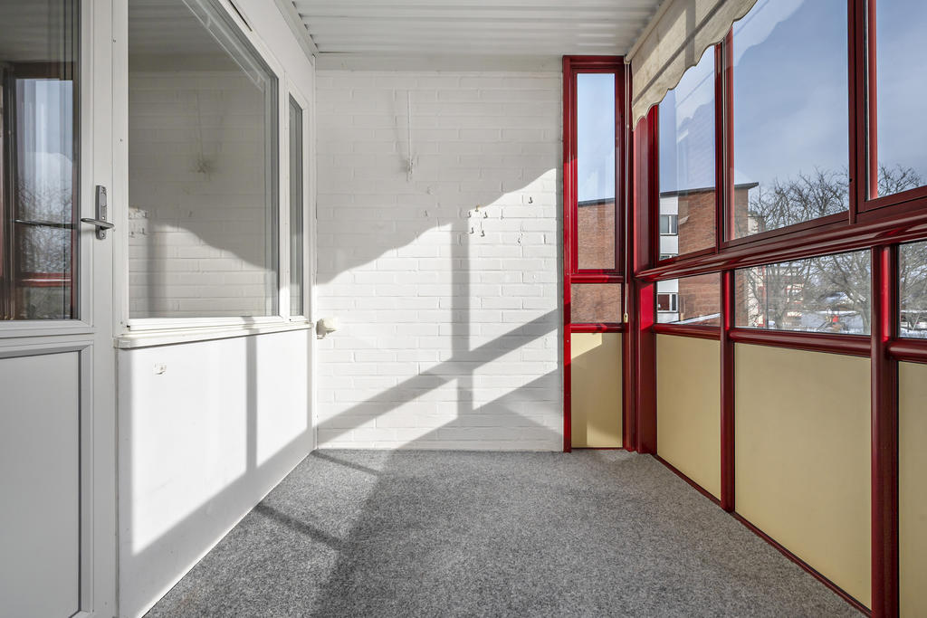 Köket är funktionellt och lätt att tycka om, med gott om arbetsyta och förvaring som gör vardagens matlagning enkel. Här finns plats för ett matbord där frukosten kan få ta sin tid – och där middagarna gärna blir långa när vänner och familj kommer förbi. Intill väntar bostadens kanske mest uppskattade pärla: den inglasade balkongen. Ett extra rum stora delar av året, perfekt för morgonkaffet i solen, en bok i favoritfåtöljen eller en mysig kväll när årstiderna skiftar. Här får du den där “lite mer”-känslan som gör stor skillnad i vardagen.