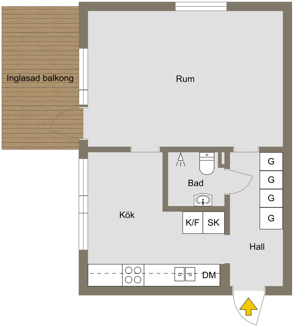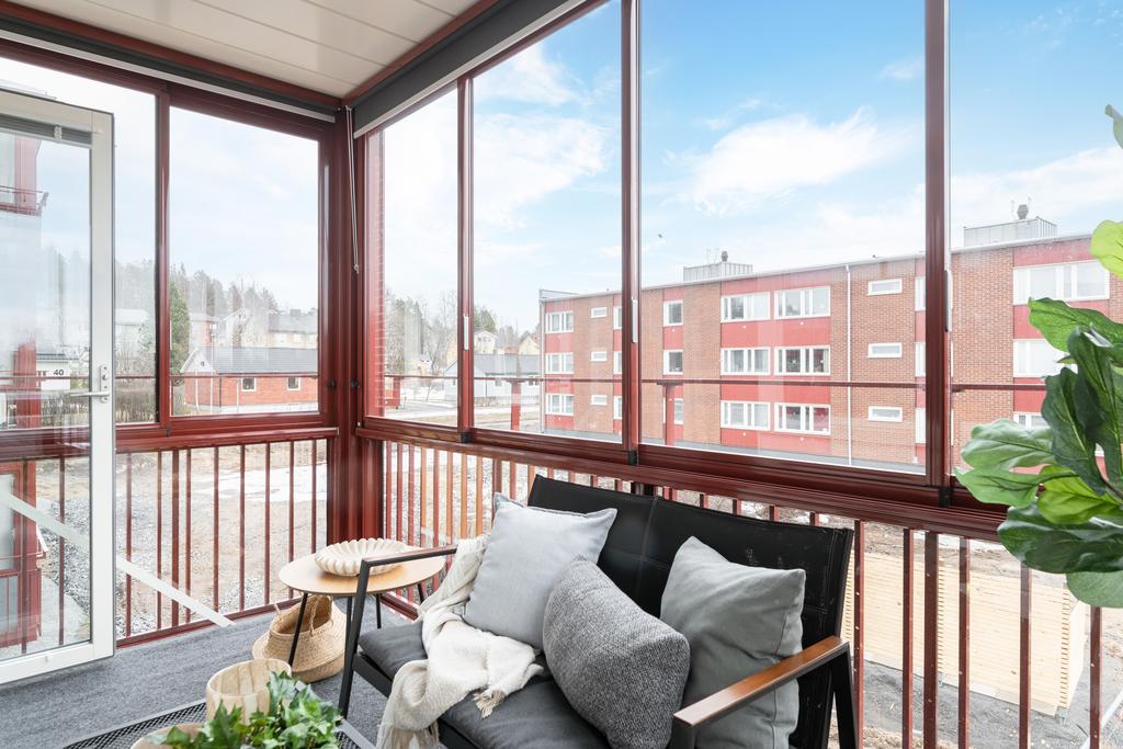 Ljus 1:a om 45,5 m² i attraktivt gavelläge med stor inglasad balkong!