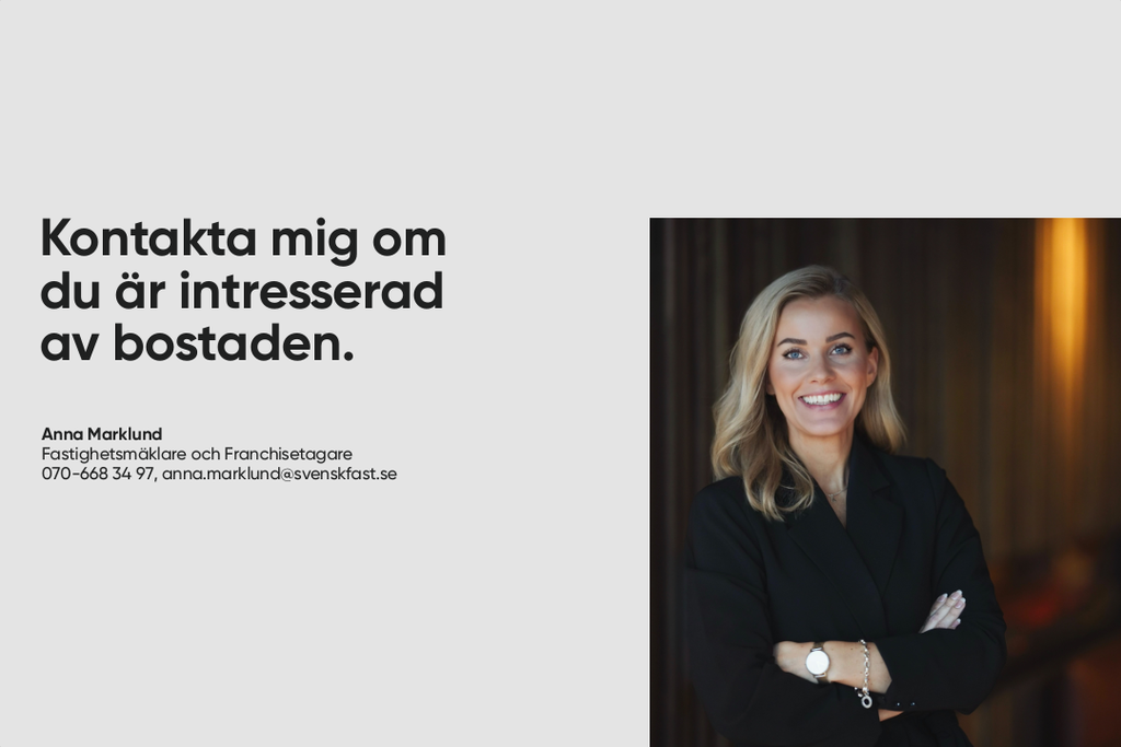Med hjälp av vår boendekostnadskalkyl får du snabbt en uppfattning om vad den här bostaden skulle kosta dig per månad. Du kan enkelt justera siffrorna utifrån dina personliga förutsättningar. Kontakta mäklaren om du vill ha hjälp med beräkningen.