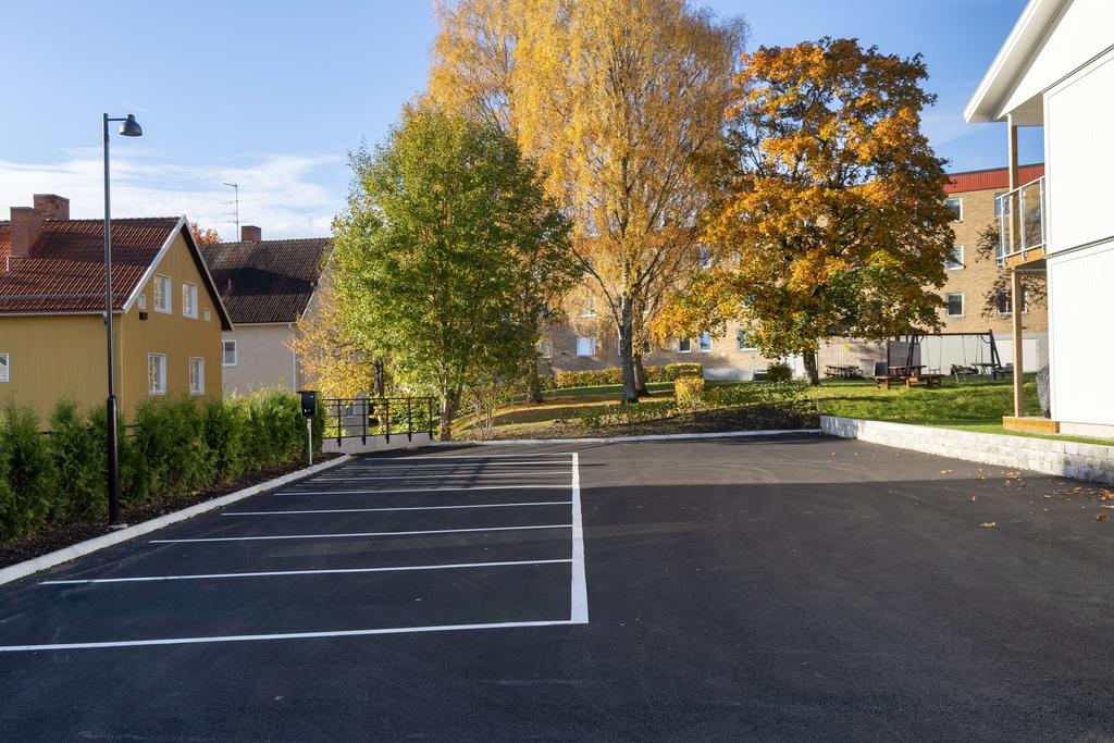 Till varje bostadsrätt hör en egen parkeringsplats och i föreningen finns 4 stycken laddplatser. Den gemensamma gårdsmiljön erbjuder grönska, uteplats och möjlighet till social samvaro i trivsam miljö. Föreningen erbjuder även ett gemensamt cykelförråd.
