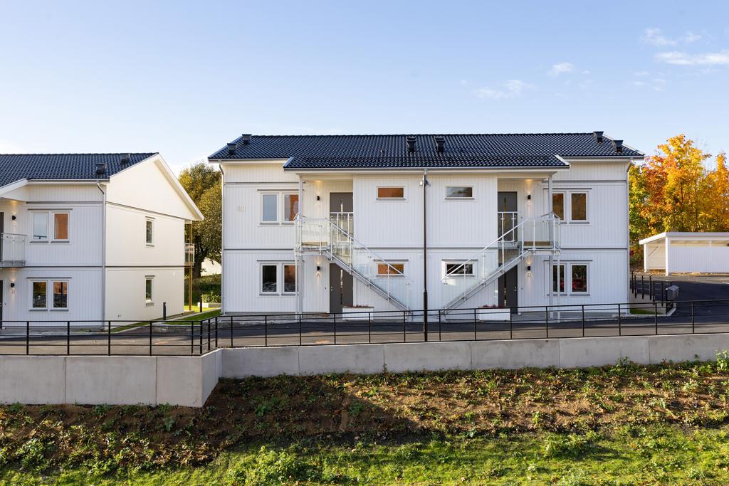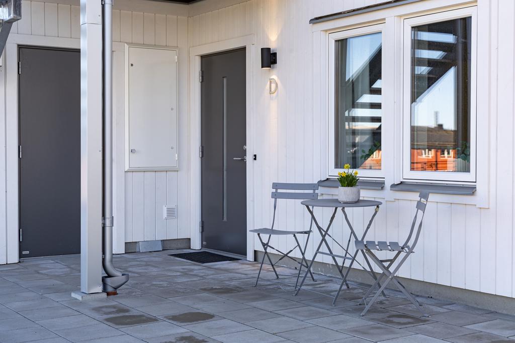 Här finner ni genomtänkta planlösningar och modern komfort till varje lägenhet har en egen entré – antingen direkt från markplanet eller via en trappa – vilket ger en privat och välkomnande känsla. I anslutning till entrén finns också ett isolerat praktiskt förråd som gör vardagen enklare.