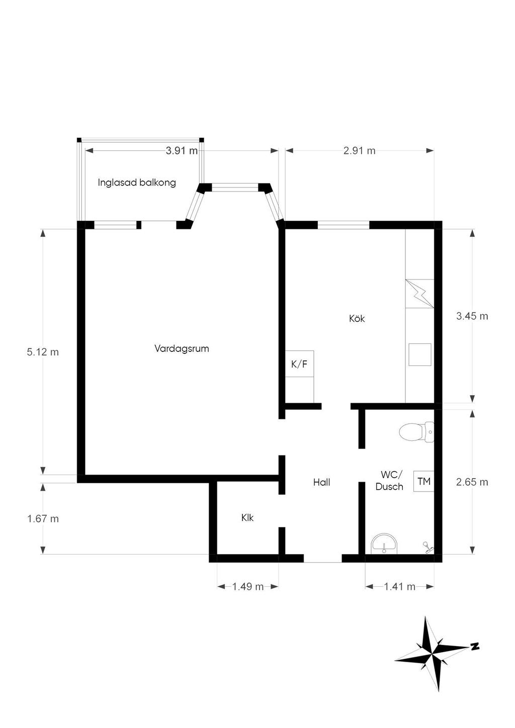 Etta med inglasad balkong!