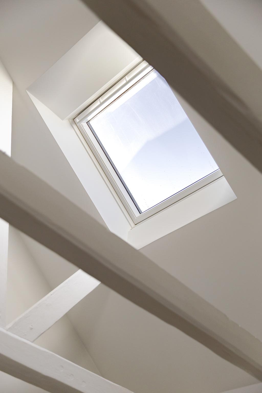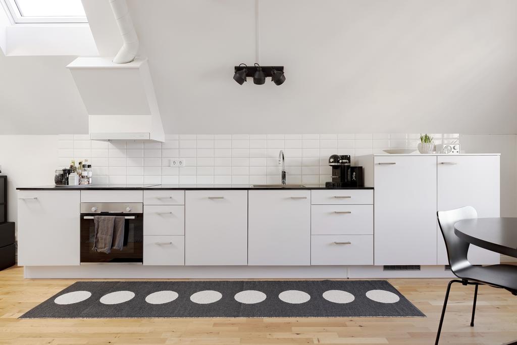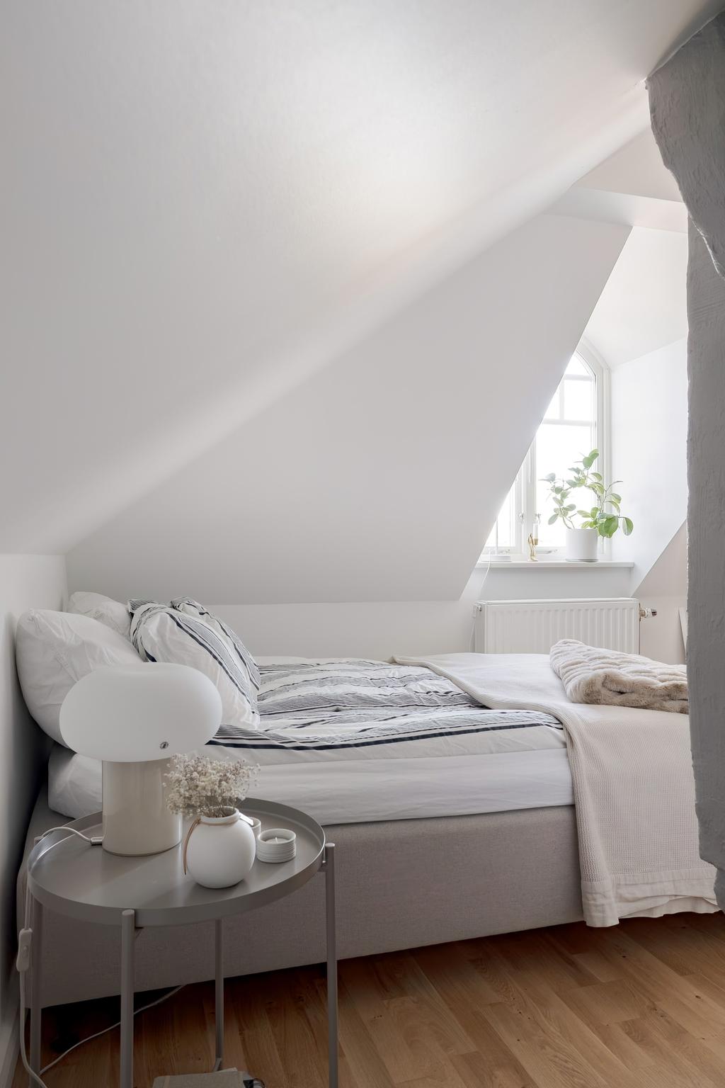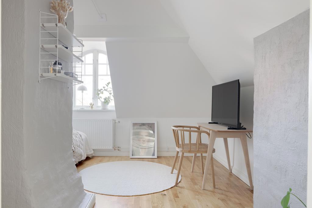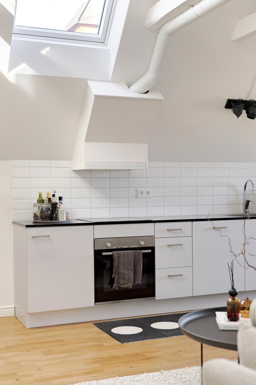 Elegant vindslägenhet med takbjälkar och utsikt över Motala ström!