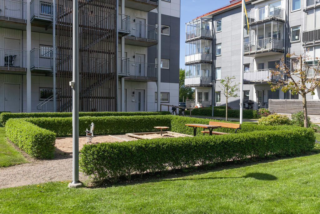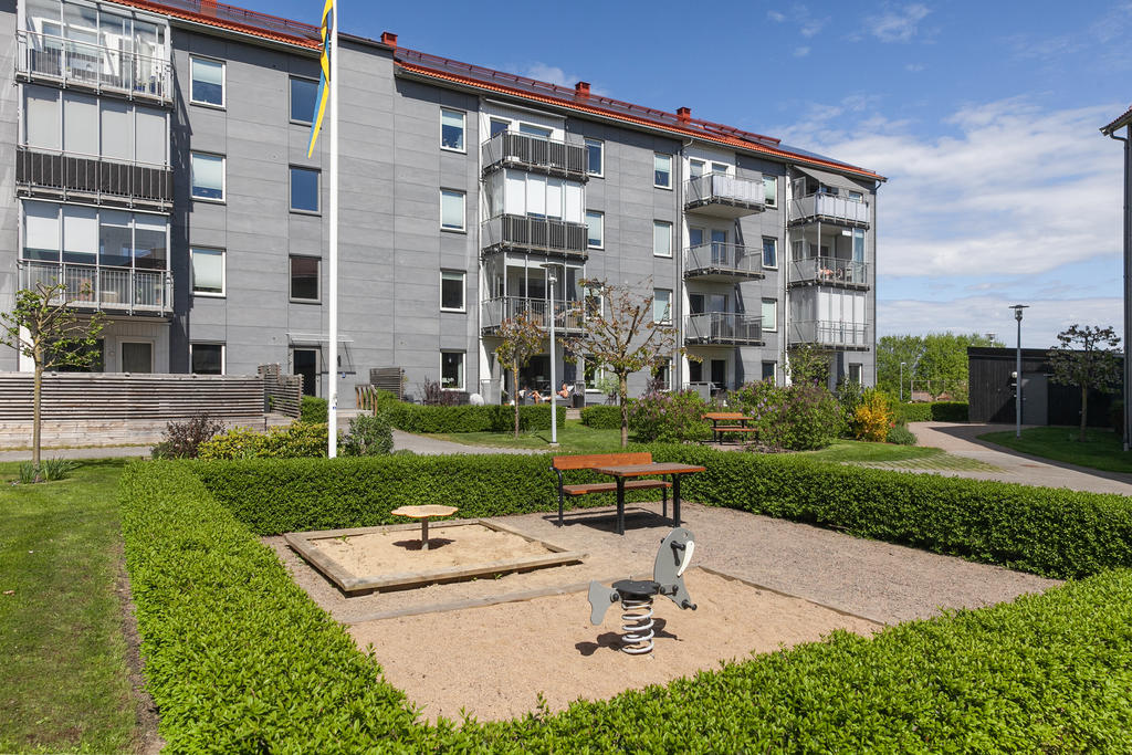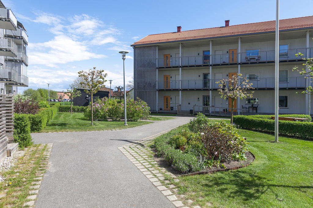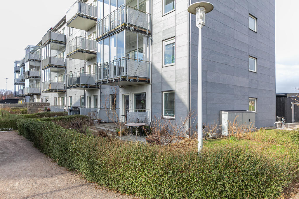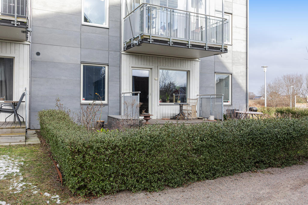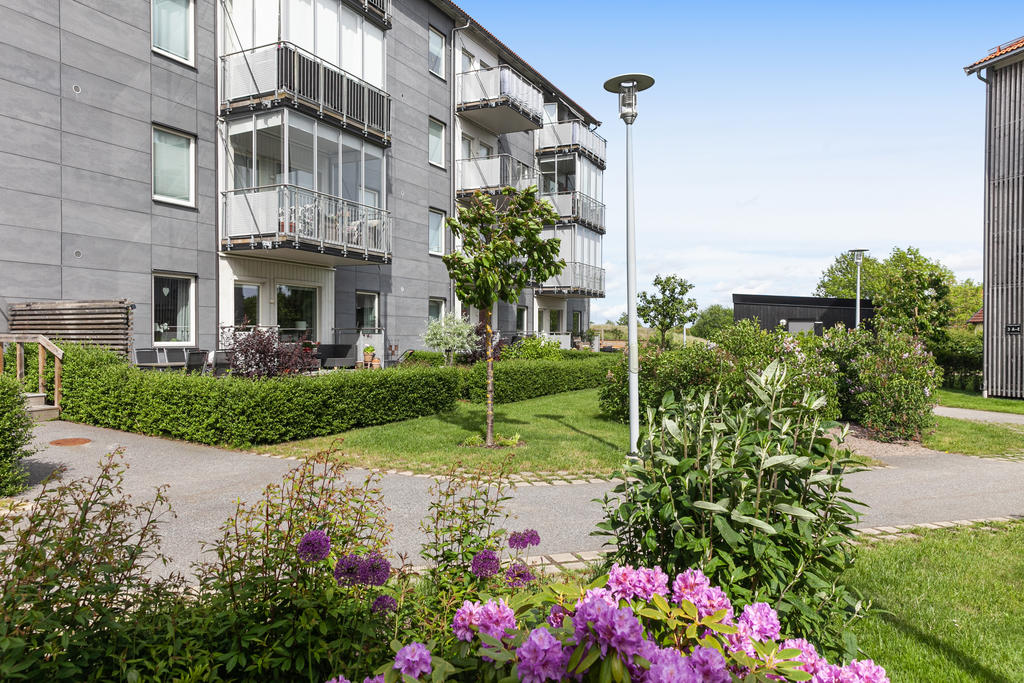 Ljus och välplanerad hörnlägenhet med generös uteplats och egen trädgård