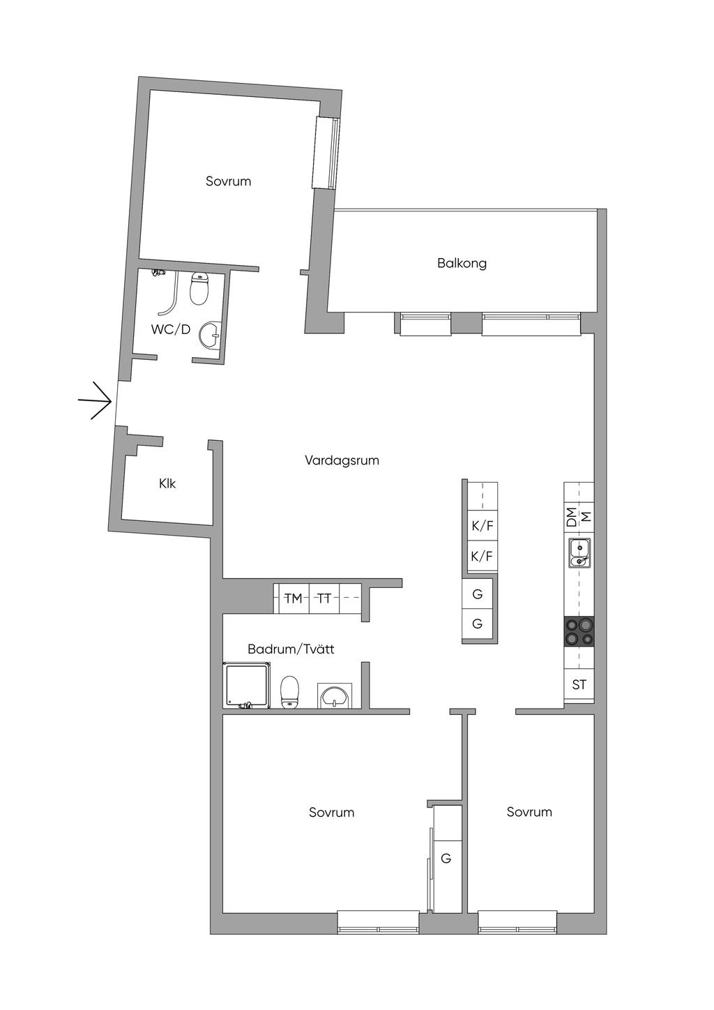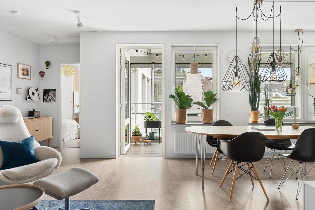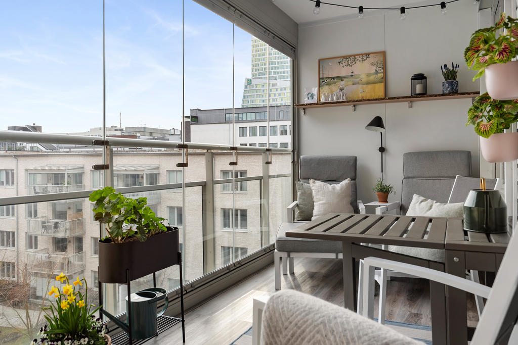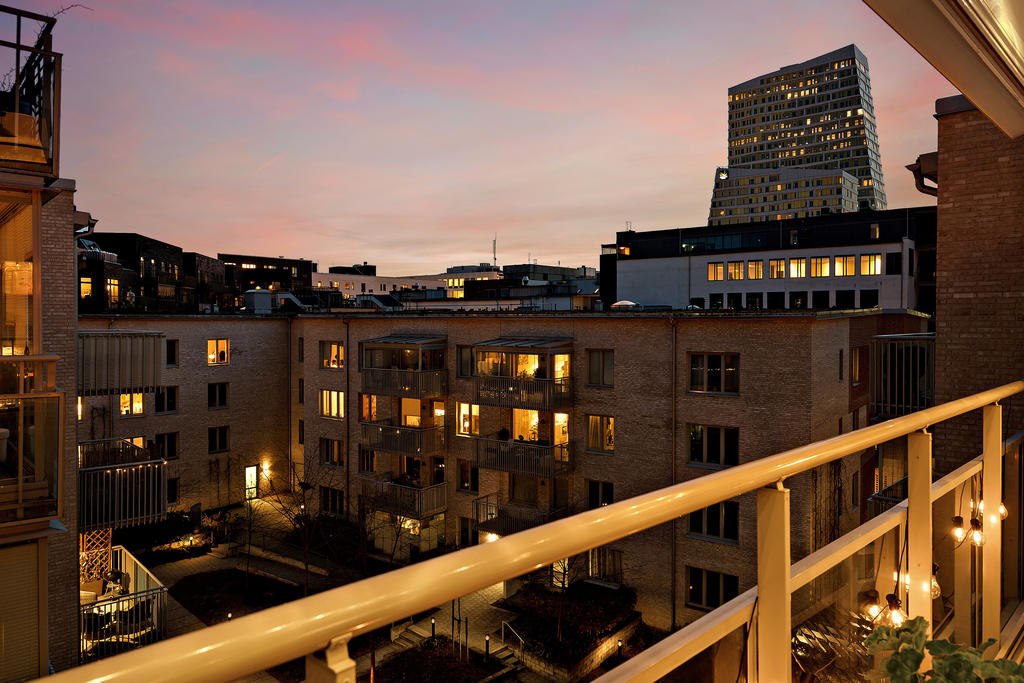Ombonad fyrrummare högt upp i huset med balkong i söderläge!