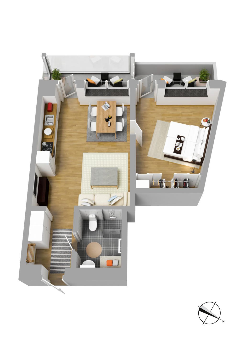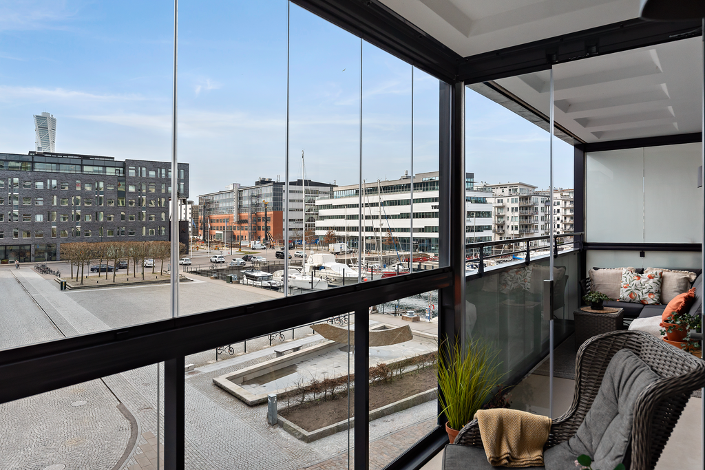 Marinavänd tvårummare med dubbla balkonger i prestigefyllda Docks!