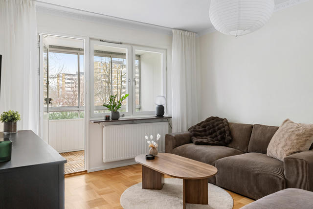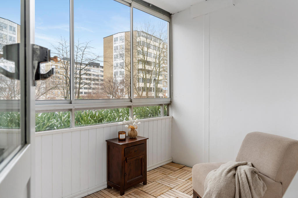 Välplanerad 1,5:a med stor inglasad balkong & inhängad grönskande innergård utanför fönstret!
