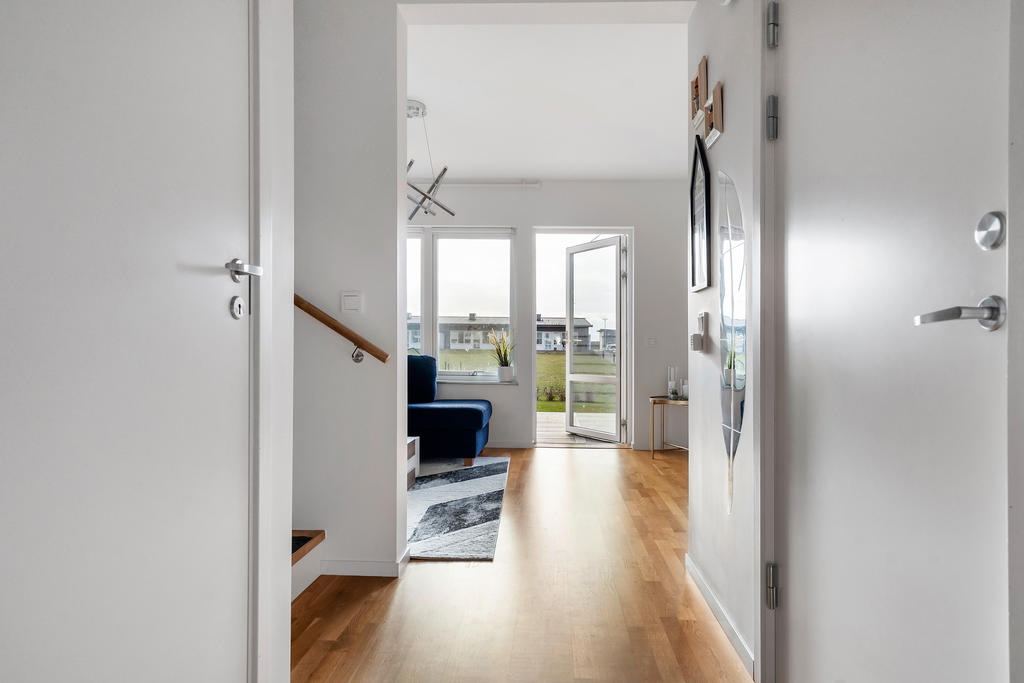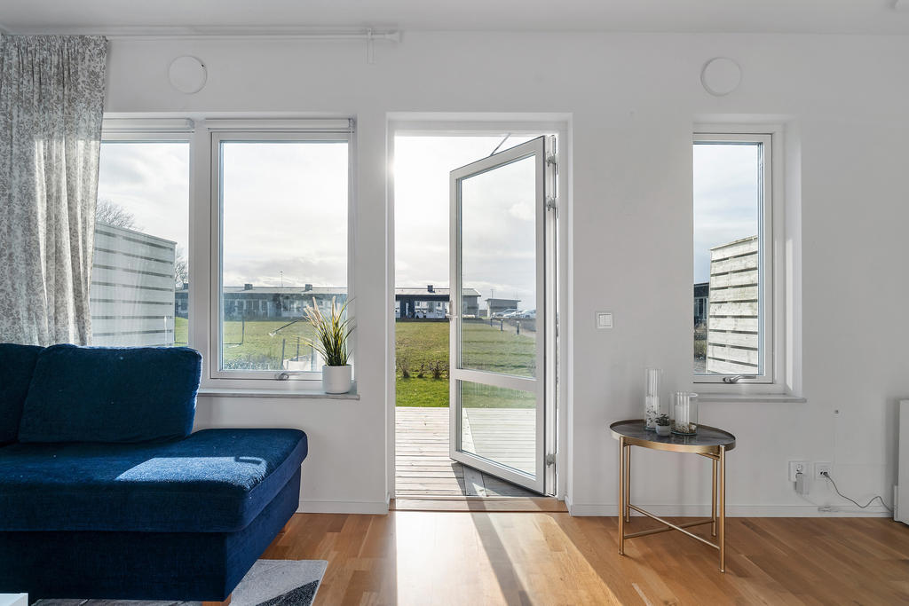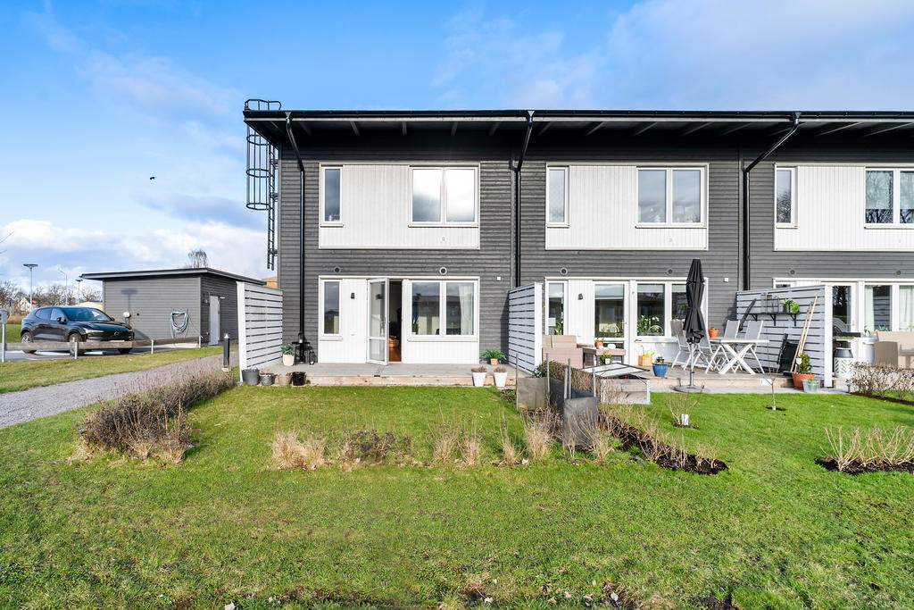 Gavelläge med ljus, rymd och två uteplatser