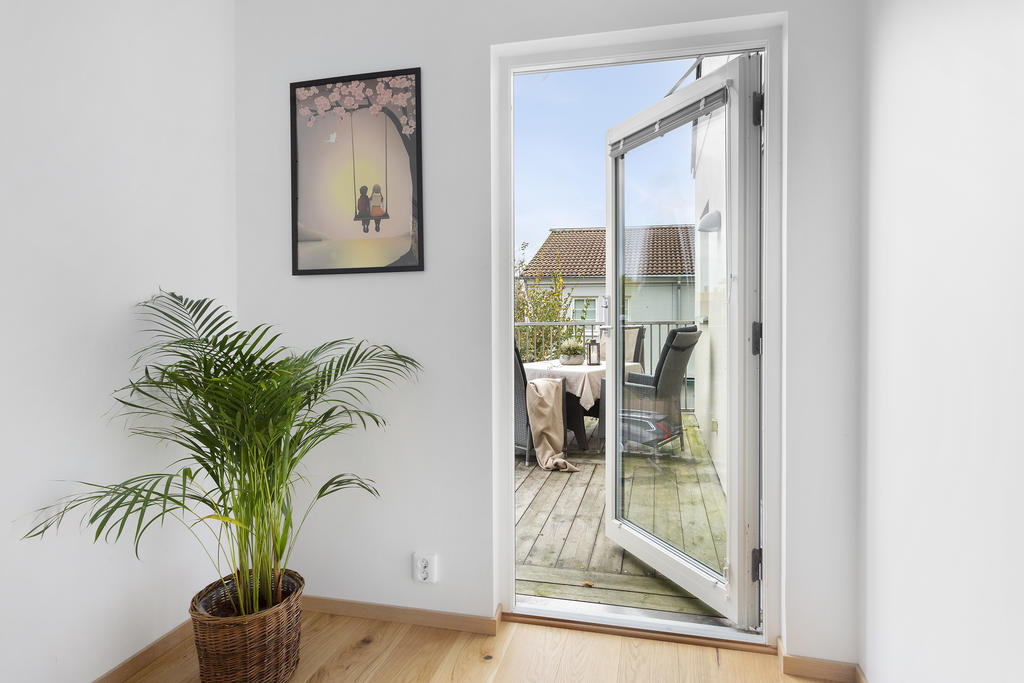 Modern trea med dubbla balkonger och vacker utsikt i hjärtat av Höllviken