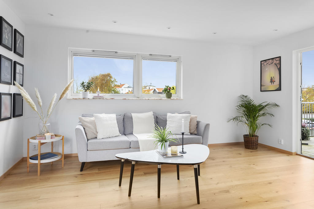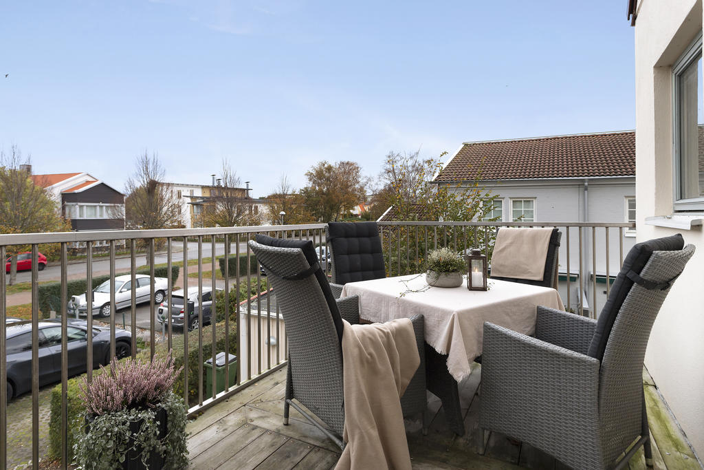 Modern trea med dubbla balkonger och vacker utsikt i hjärtat av Höllviken
