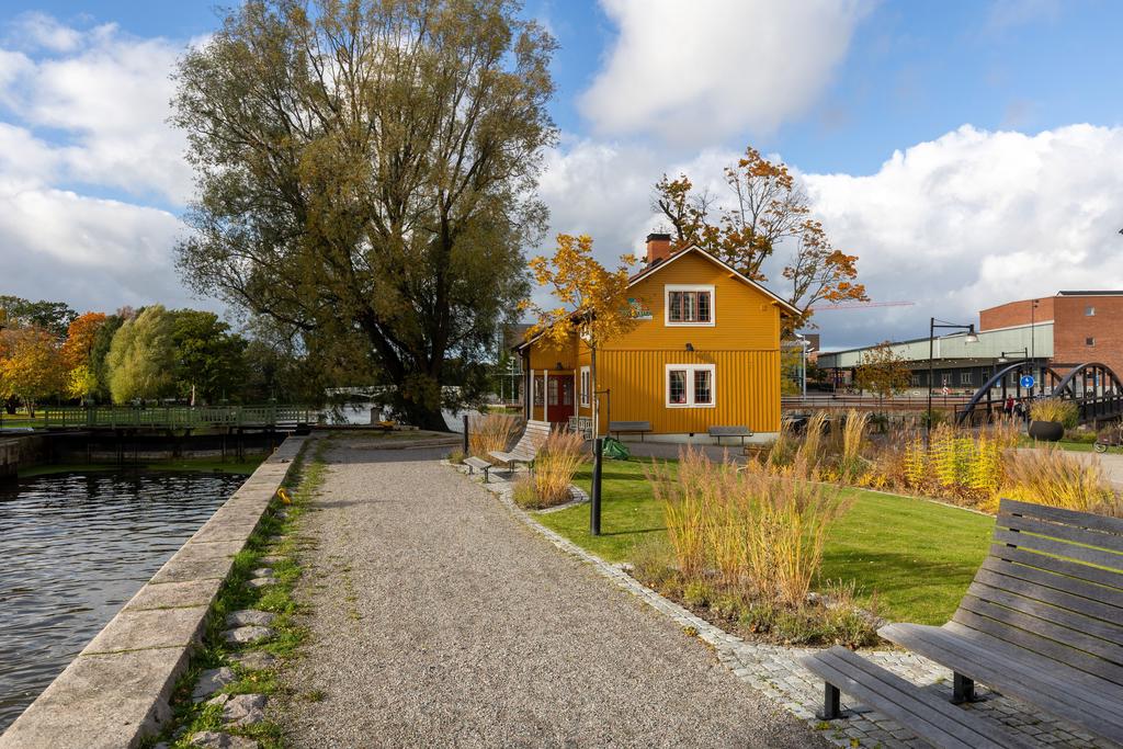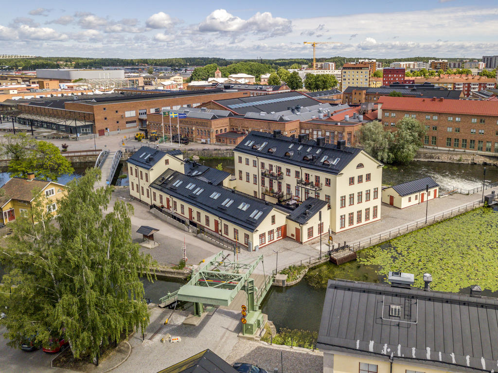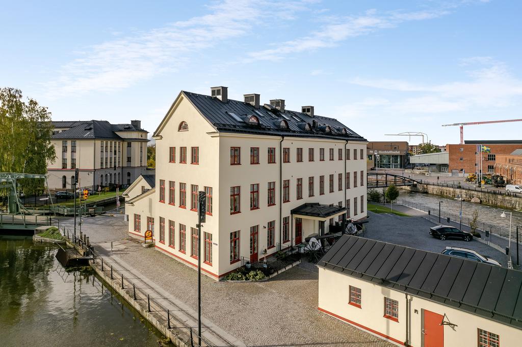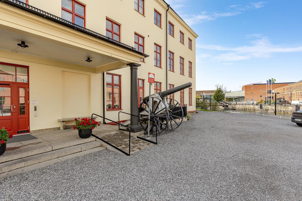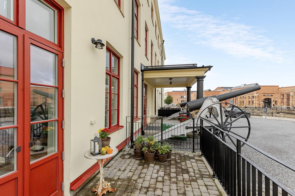 År 1813 slogs portarna upp till Gevärsfaktoriet - en av Eskilstunas pampigaste industribyggnader. Efter en omfattande renovering huserar idag Bostadsrättsföreningen Kanonhusholmen i den vackra 1800-talsfastigheten. Renoveringarna är utförda med respekt för arkitekturen och områdets del av stadens historia. Det svarta bandfalsade plåttaket, balkongernas smidesräcken och röda fönstren ger en stilfull kontrast till den putsade fasaden. Invändigt möter en toppmodern inredning med alla tänkbara bekvämligheter, charmiga bevarade detaljer med generös takhöjd och ett magiskt ljus från höga spröjsade fönster. Läget mitt i Eskilstunaån - mellan Rothoffsparkens prunkande oas och det expansiva Munktellområdet - ger ett unikt boende med lika nära till kulturella upplevelser, vackra strövområdet utmed ån som fritidsaktiviteter och stadens puls.