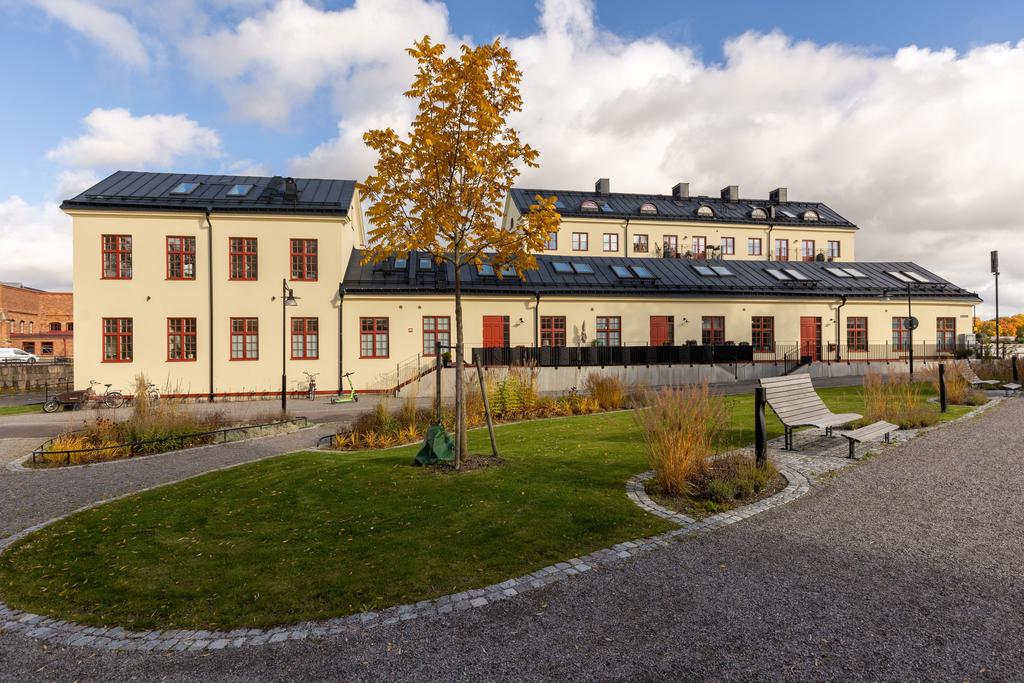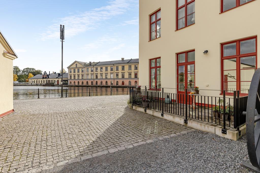 År 1813 slogs portarna upp till Gevärsfaktoriet - en av Eskilstunas pampigaste industribyggnader. Efter en omfattande renovering huserar idag Bostadsrättsföreningen Kanonhusholmen i den vackra 1800-talsfastigheten. Renoveringarna är utförda med respekt för arkitekturen och områdets del av stadens historia. Det svarta bandfalsade plåttaket, balkongernas smidesräcken och röda fönstren ger en stilfull kontrast till den putsade fasaden. Invändigt möter en toppmodern inredning med alla tänkbara bekvämligheter, charmiga bevarade detaljer med generös takhöjd och ett magiskt ljus från höga spröjsade fönster. Läget mitt i Eskilstunaån - mellan Rothoffsparkens prunkande oas och det expansiva Munktellområdet - ger ett unikt boende med lika nära till kulturella upplevelser, vackra strövområdet utmed ån som fritidsaktiviteter och stadens puls.