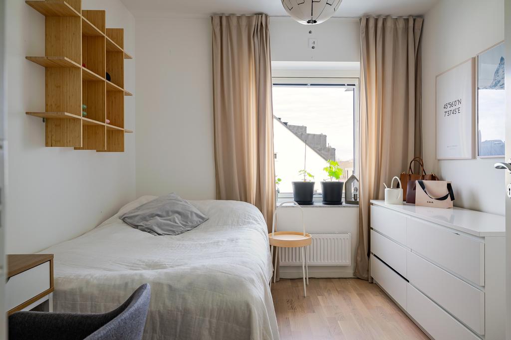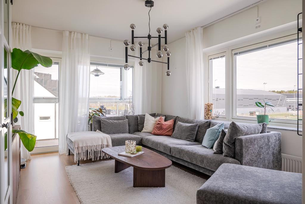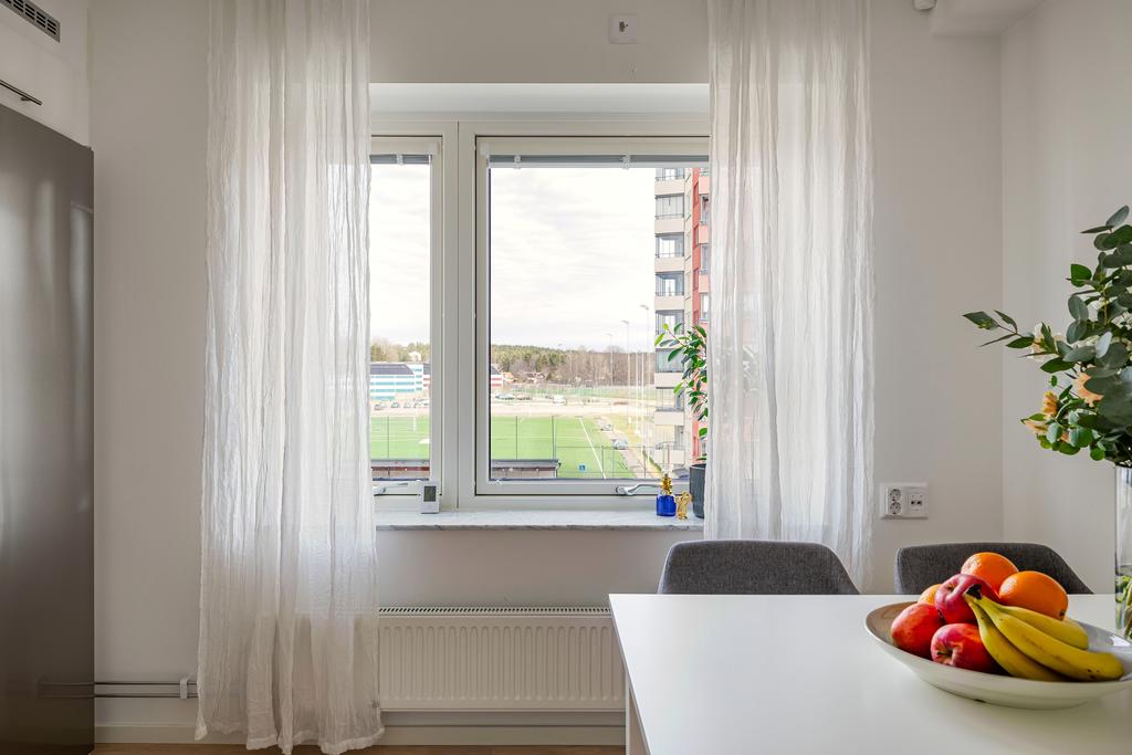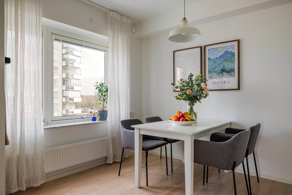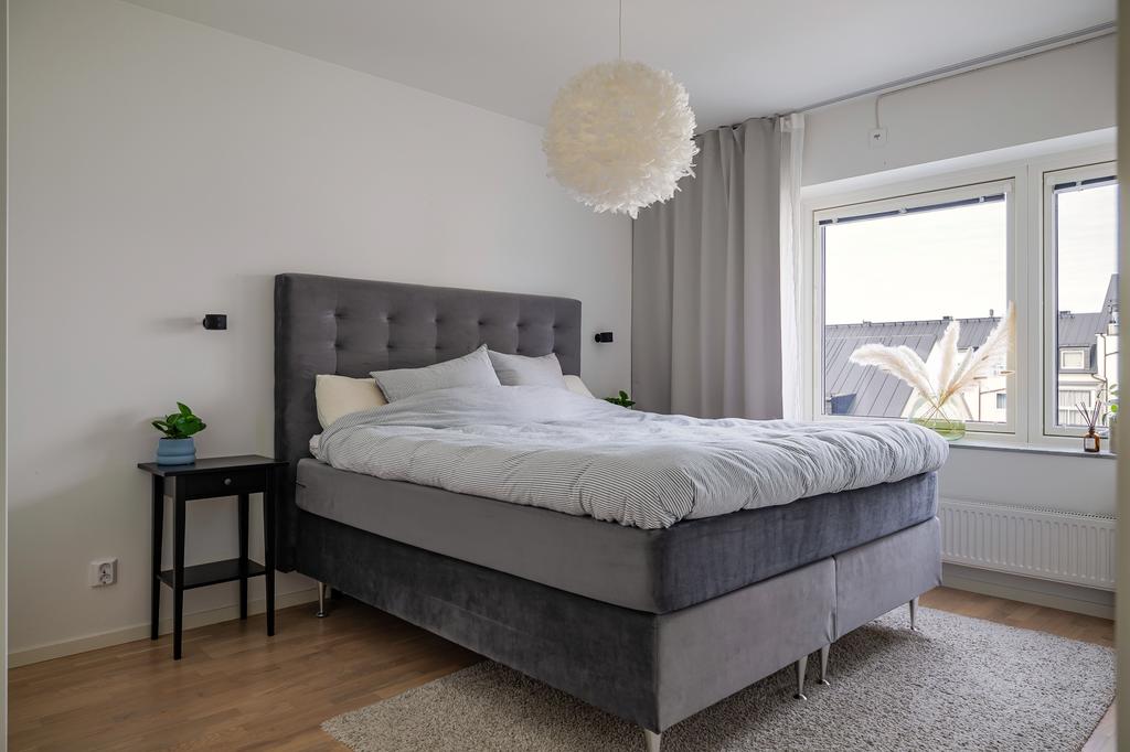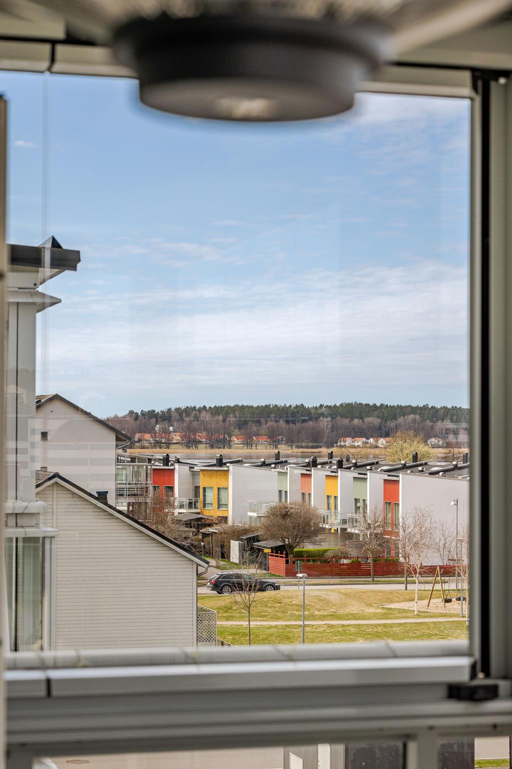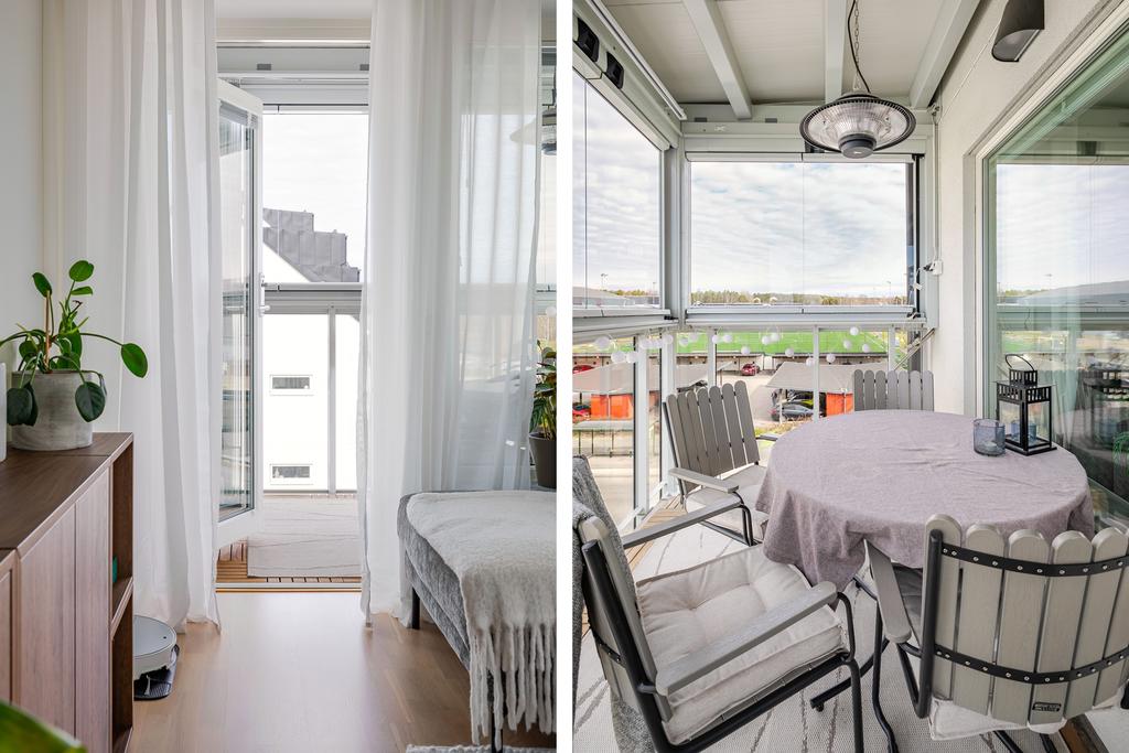 Ljus gavellägenhet med utsikt över Rosvalla och inglasad balkong i kvällssol!