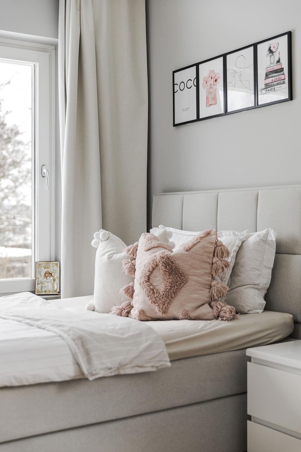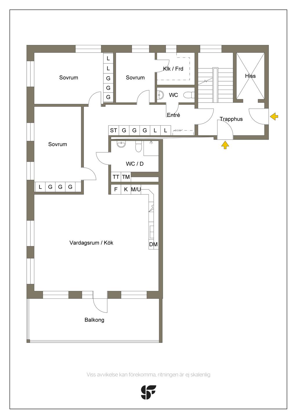 Det finns 3 sovrum som alla är ljust inredda och har stora fönster: Ett stort master bedroom, ett andra sovrum som är nästan lika stort och det tredje, lite mindre sovrummet som dessutom har egen separat access till walk-in closet. Lägenhetens entré, går i vinkel, har gott om förvaringsmöjligheter i de stora garderoberna samt en separat helkaklat toalett. I det fräscha badrummet finns även tvättmaskin och torktumlare.