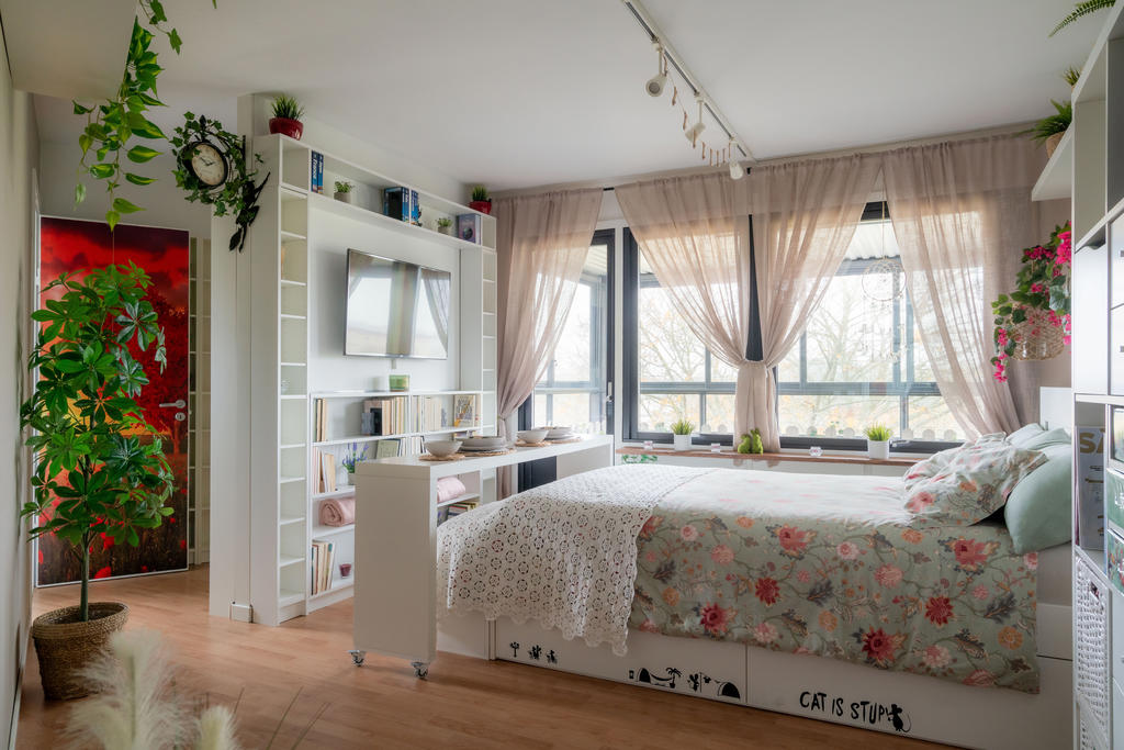 You’ll also enjoy a glazed balcony – a perfect spot for extra space, light, and relaxation. The layout allows for smart furnishing options, such as a small rollable table that can easily be moved for work or dining.