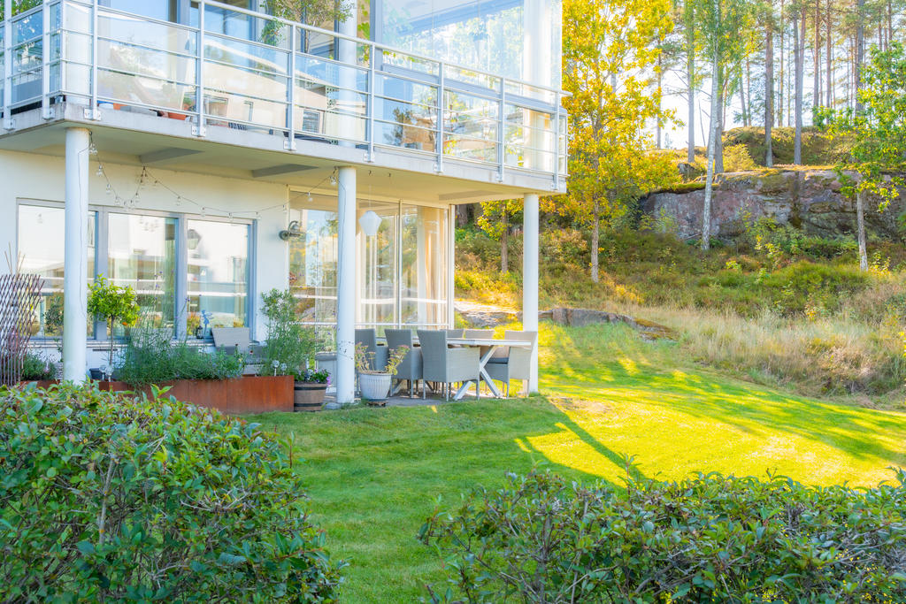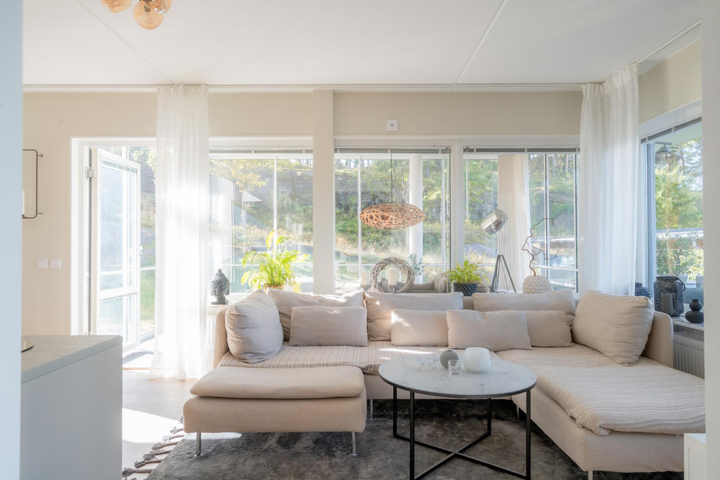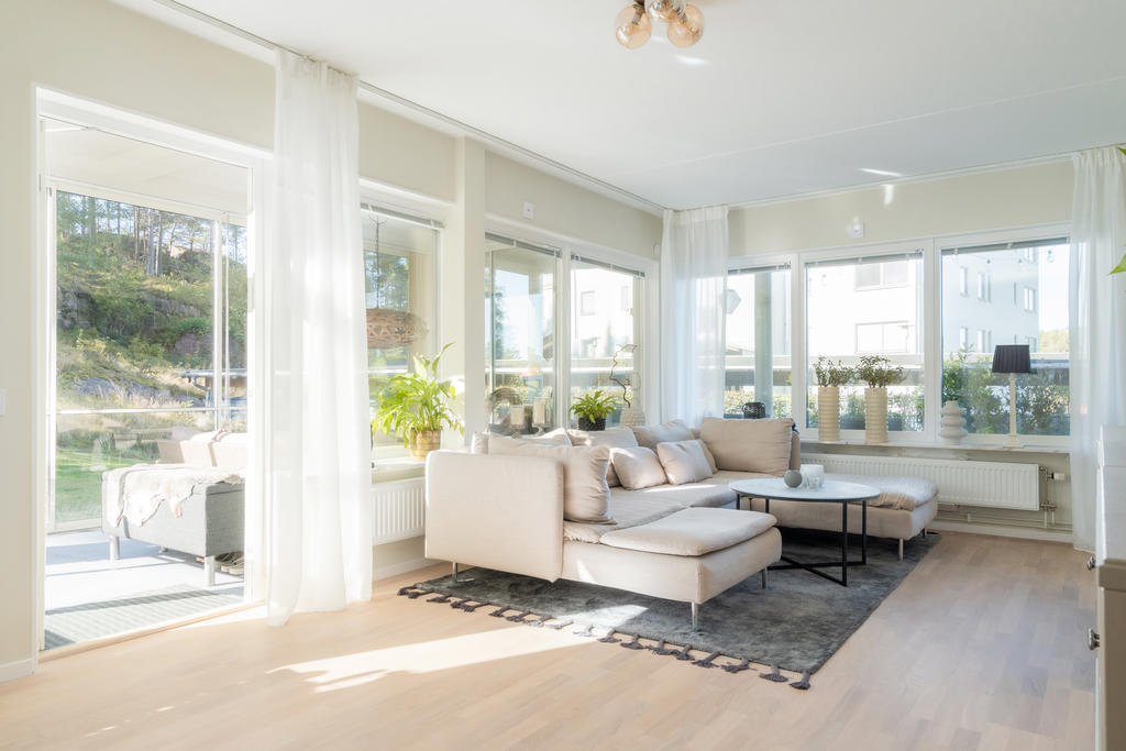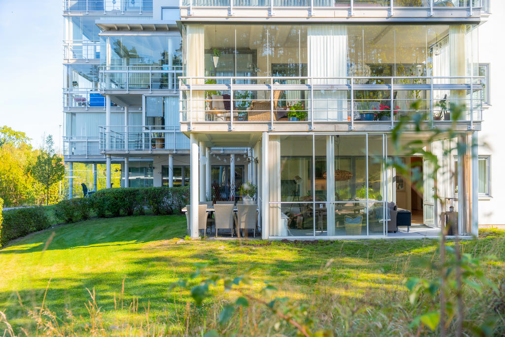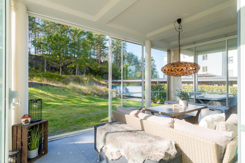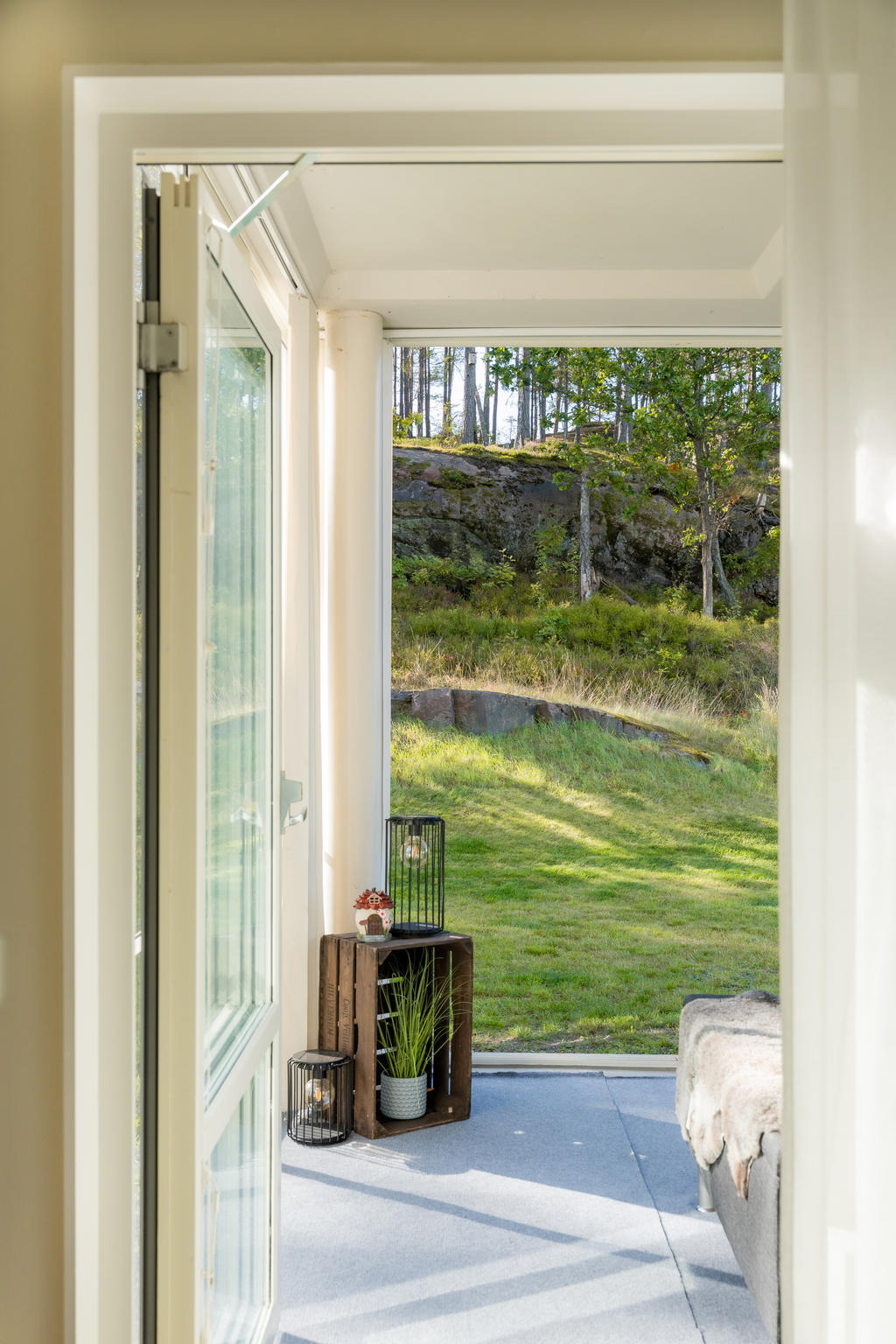 Stilren och ljus markplanslägenhet med uterum – nära hav och natur
