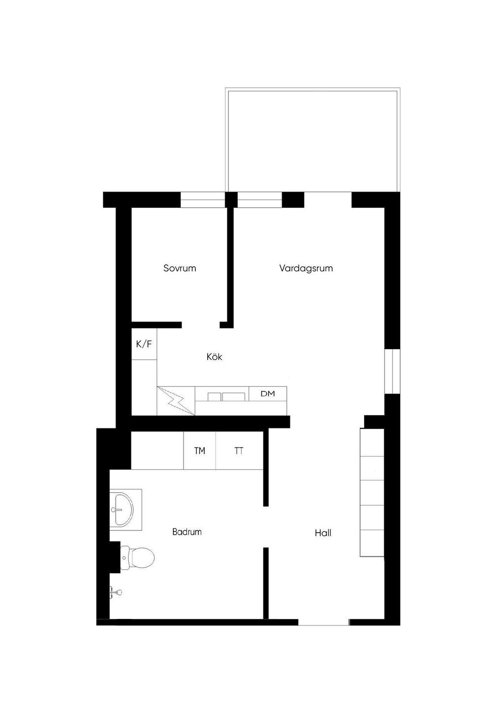 Fin 1,5 rummare med stor balkong i vinkel med kvällssol!