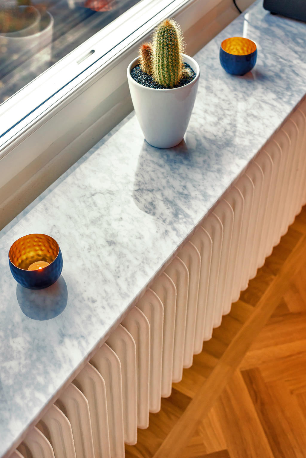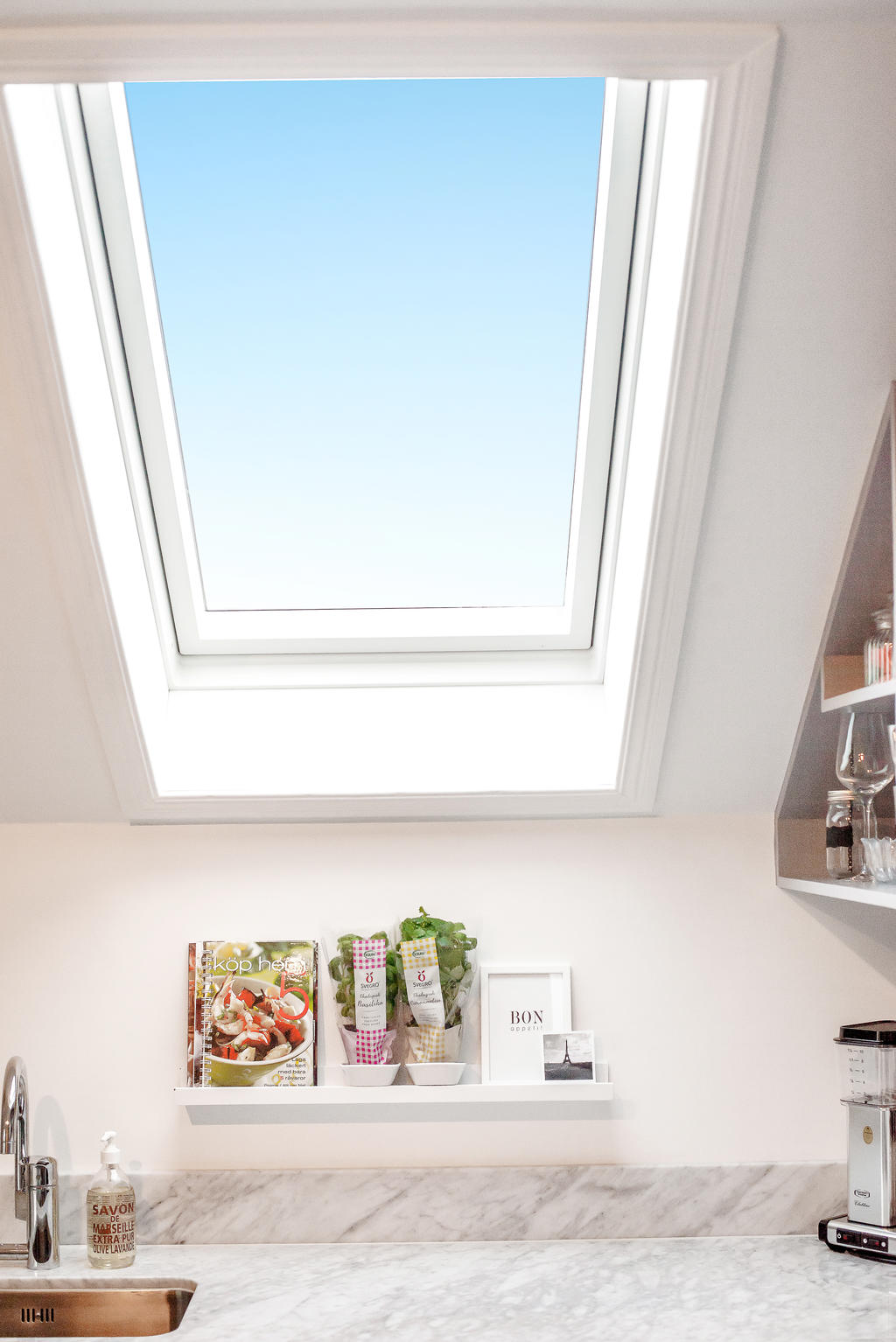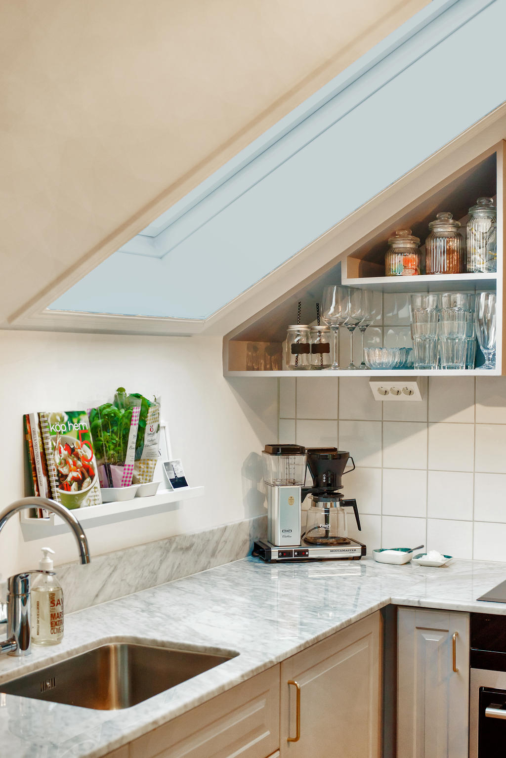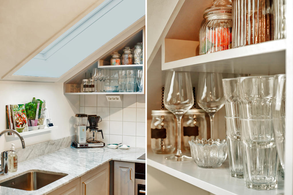 Lägenheten totalrenoverades 2015 och präglas av en tydlig röd tråd genom hela bostaden. Dörrarna och listverken i vacker grå ton harmonierar med kökets eleganta nyanser, vilket tillsammans med den enhetliga äkta stavparketten skapar ett exklusivt och sammanhållet uttryck. Köket är fullt utrustat med intrigerade vitvaror såsom diskmaskin och lyxig vinkyl. Både köksbänken och fönsterbrädorna är i vacker marmor som förstärker bostadens lyxiga känsla. De sociala ytorna är ljusa och öppna, med ett fantastiskt ljusinsläpp. I vardagsrummet finns en inbyggd bokhylla samt en smakfullt inbyggd tv-möbel med knoppar i samma stil – ytterligare en detalj som binder samman bostadens genomtänkta design. Vardagsrummet har eleganta dimbara spotlights, och även övrig belysning är till större delen dimbar. Det rofyllda sovrummet har ett dekorativt trappsteg med infälld belysning och ett fönster mot hallen som ger både ljus och rymd. Badrummet från 2015 är utfört i trendig marockansk stil med kopparfärgade rördetaljer samt bekvämligheter som golvvärme och tvättmaskin. Det finns också en torktumlare i bostaden. Mattvätt finns i bostadsrättsföreningens välutrustade tvättstuga. Bostaden har varit sporadiskt bebodd sedan den totalrenoverades och är väl bevarad och i fint skick.