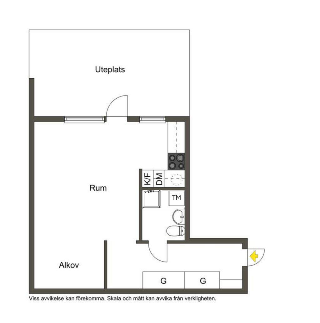 Fantastisk etta med sovalkov, optimal planlösning, stambytt badrum med tvättmaskin och stor uteplats