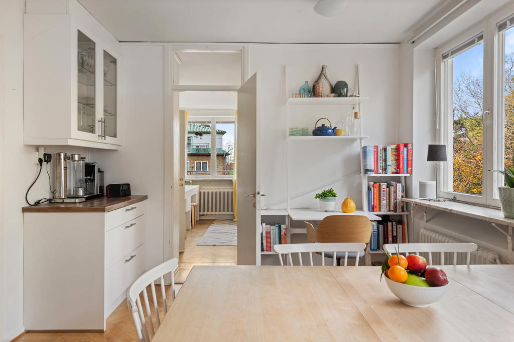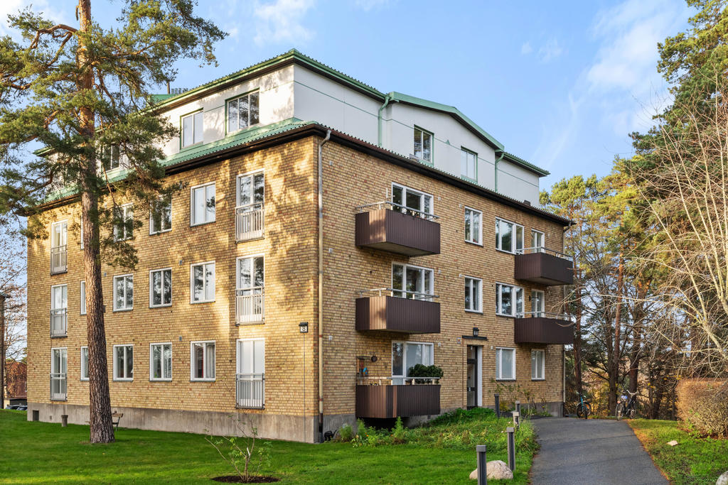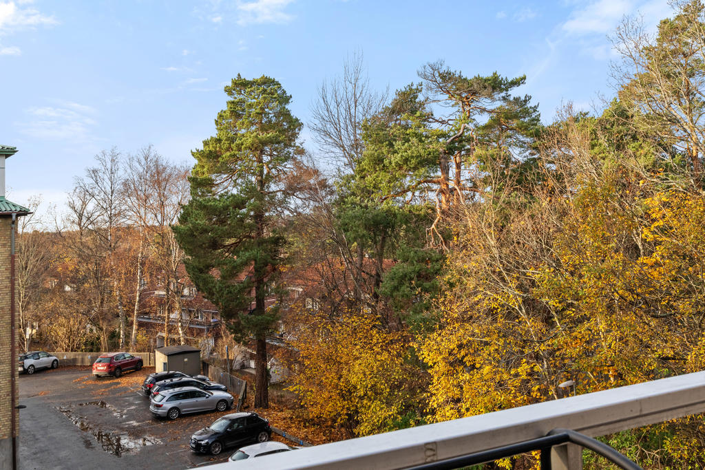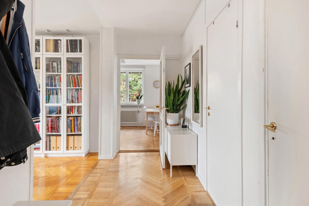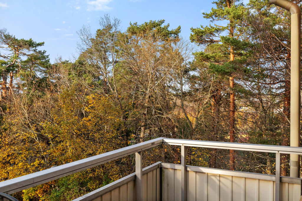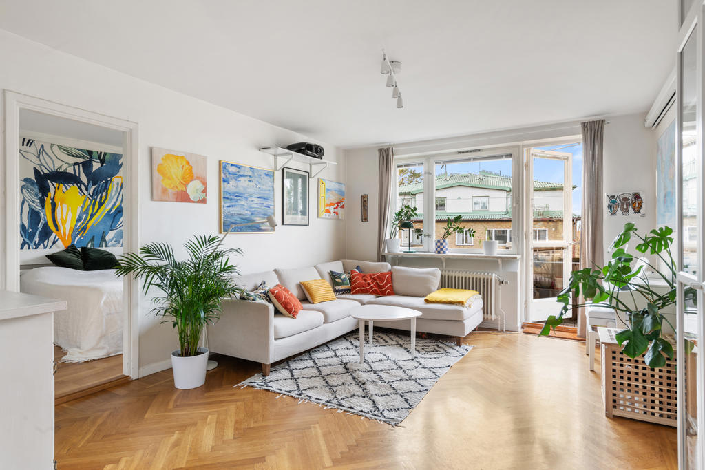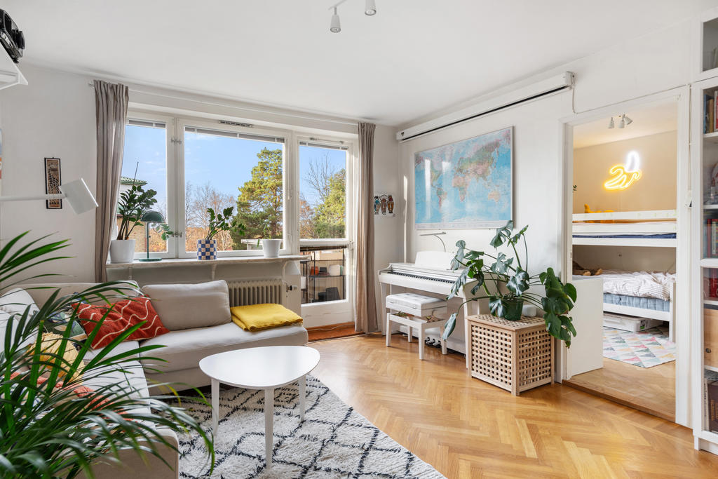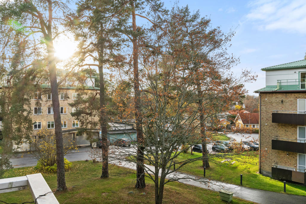 På andra våningen med högt och insynsskyddat läge erbjuds nu tre rum och kök med balkong i väster.