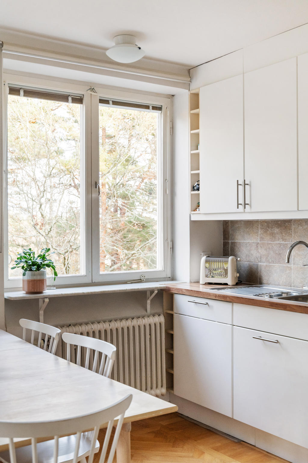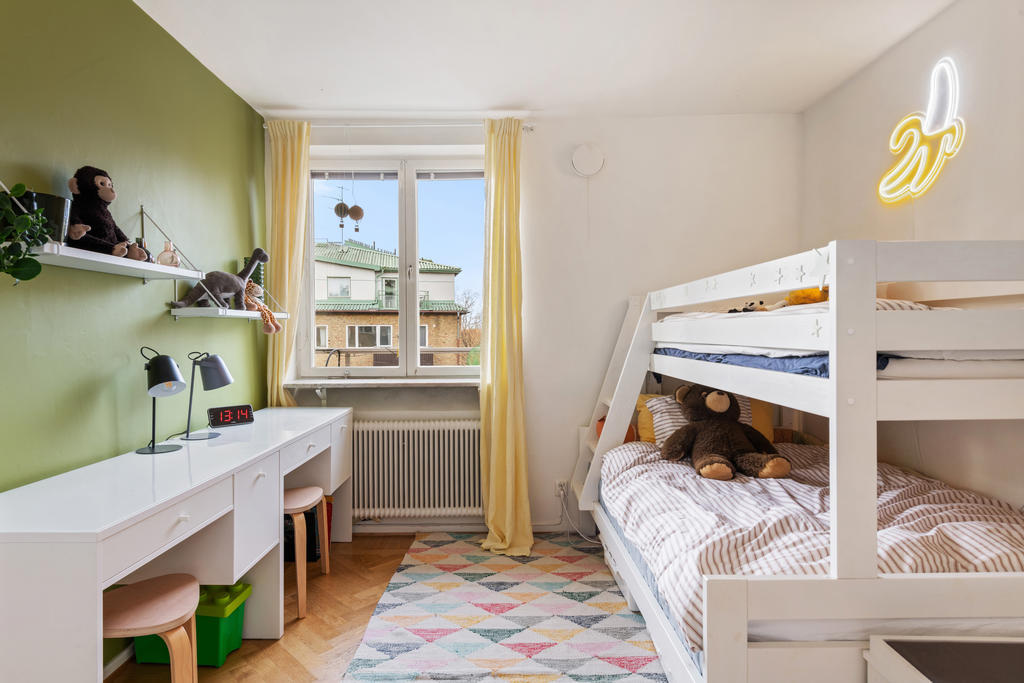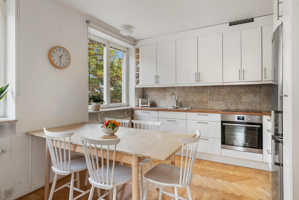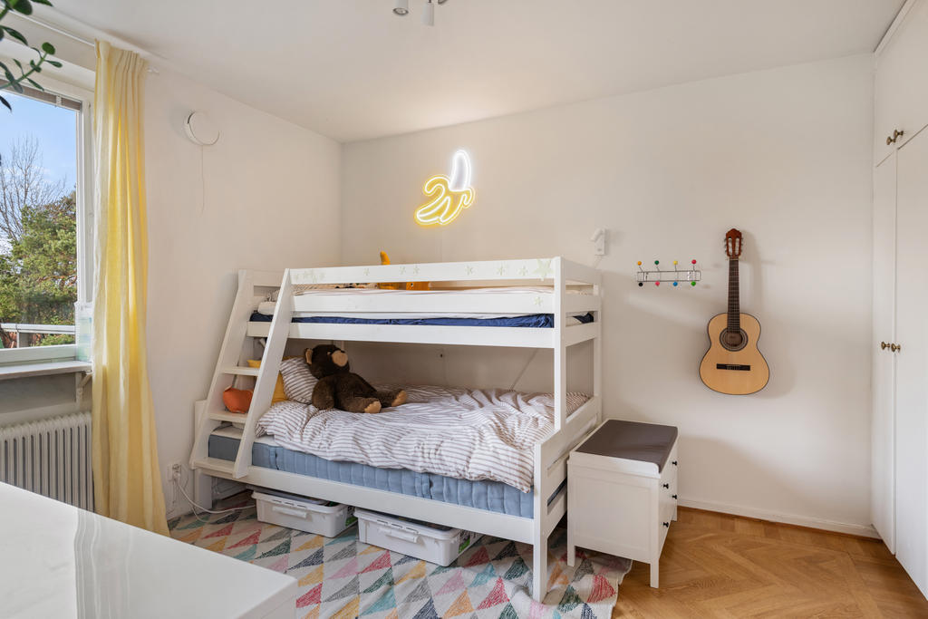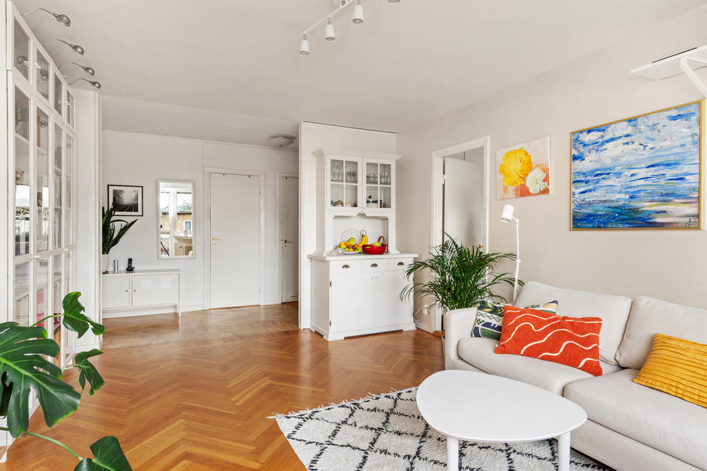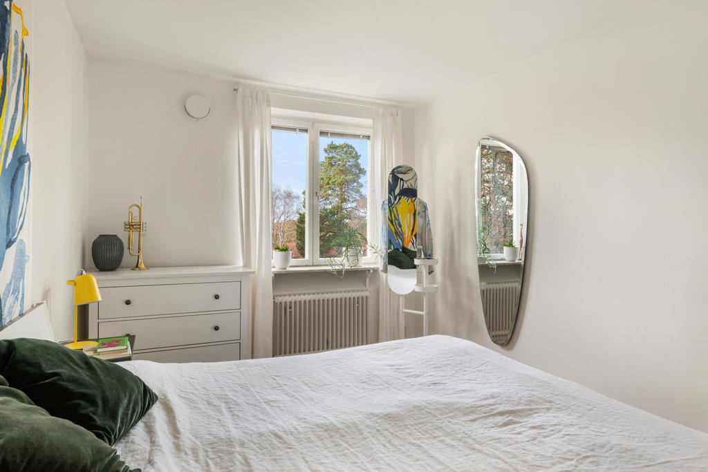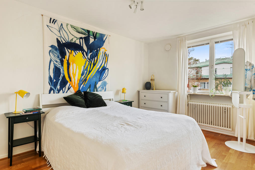 På andra våningen med högt och insynsskyddat läge erbjuds nu tre rum och kök med balkong i väster.