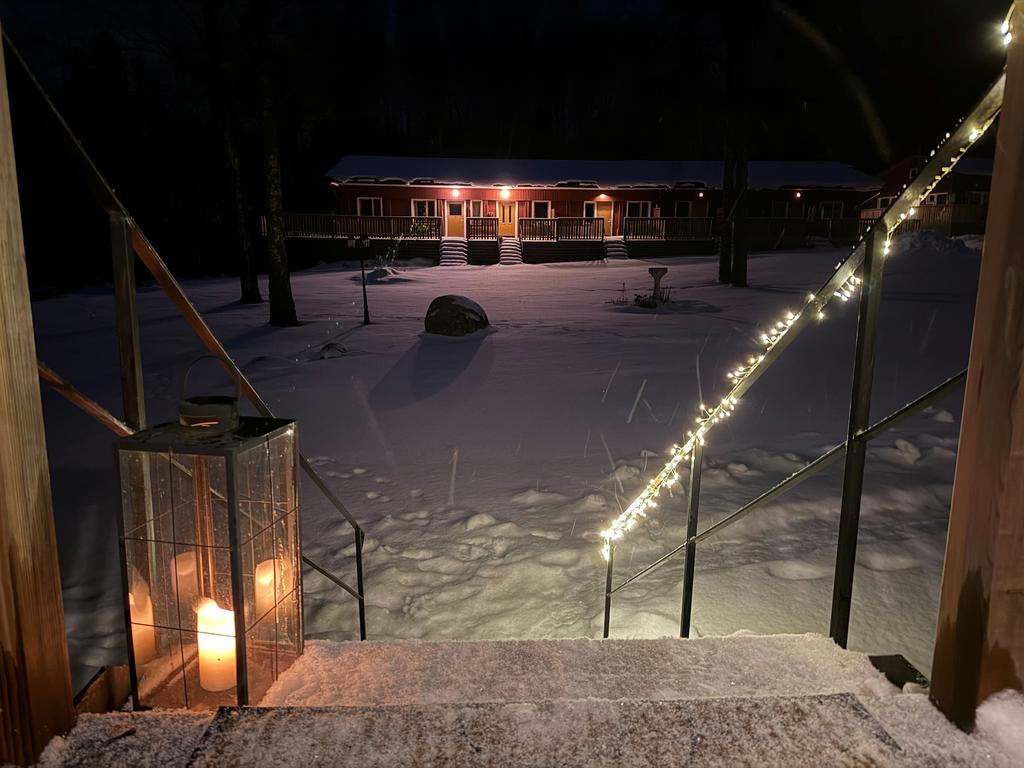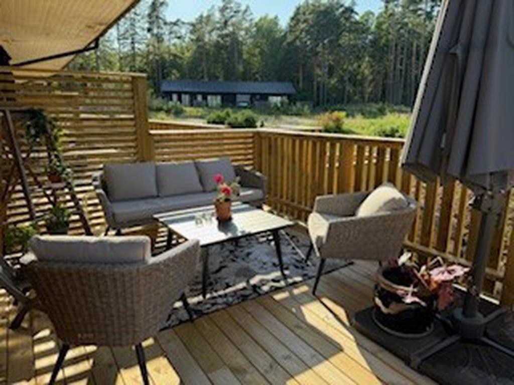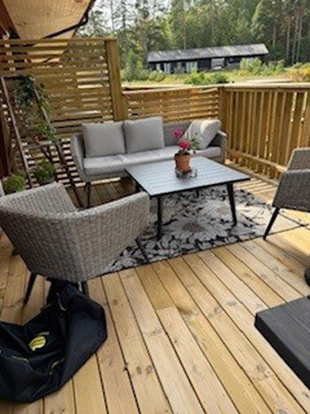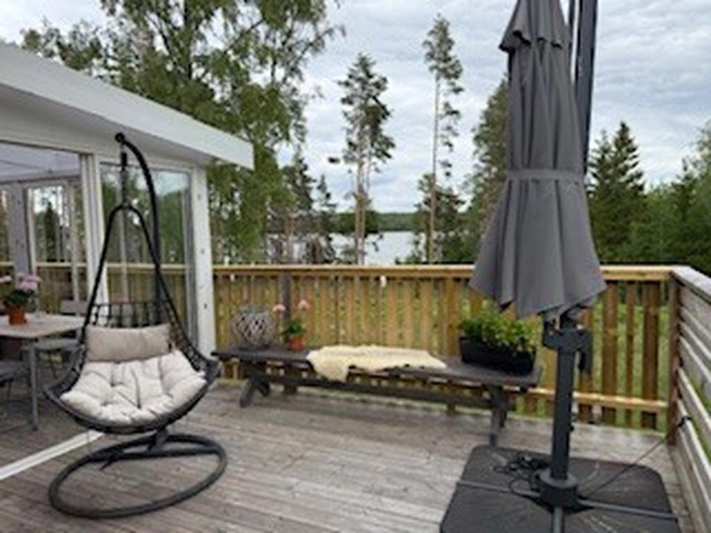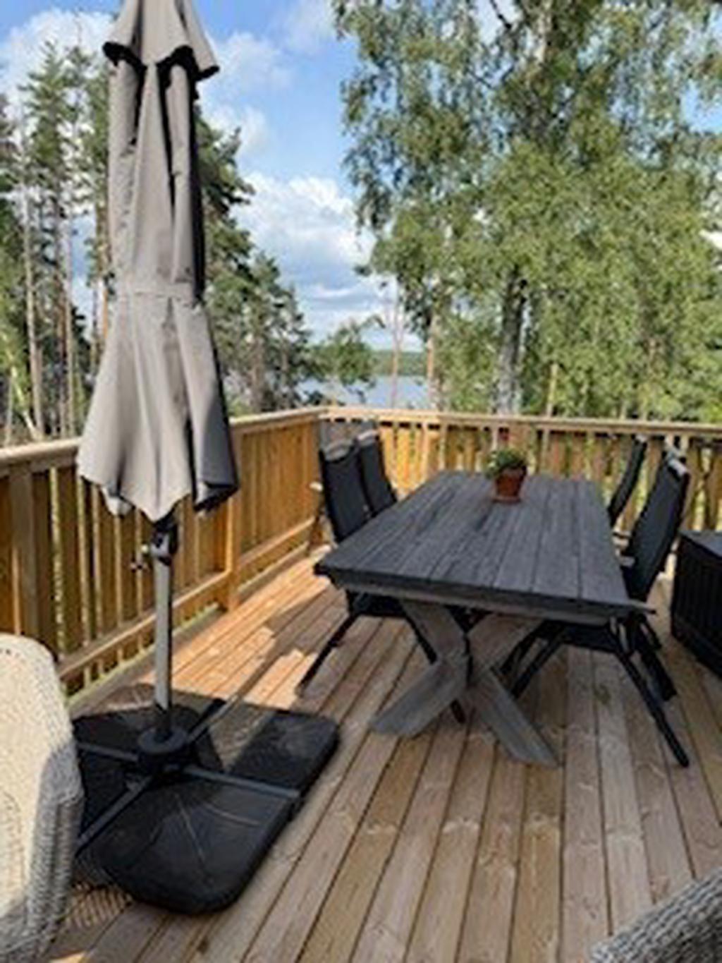 Bostaden har förädlats med ett välbyggt uterum om 15 kvm som kan nyttjas året om. Här har man underbar kontakt med skog och sjö. Vidare finns ett generöst trädäck om ca 60 kvm.
