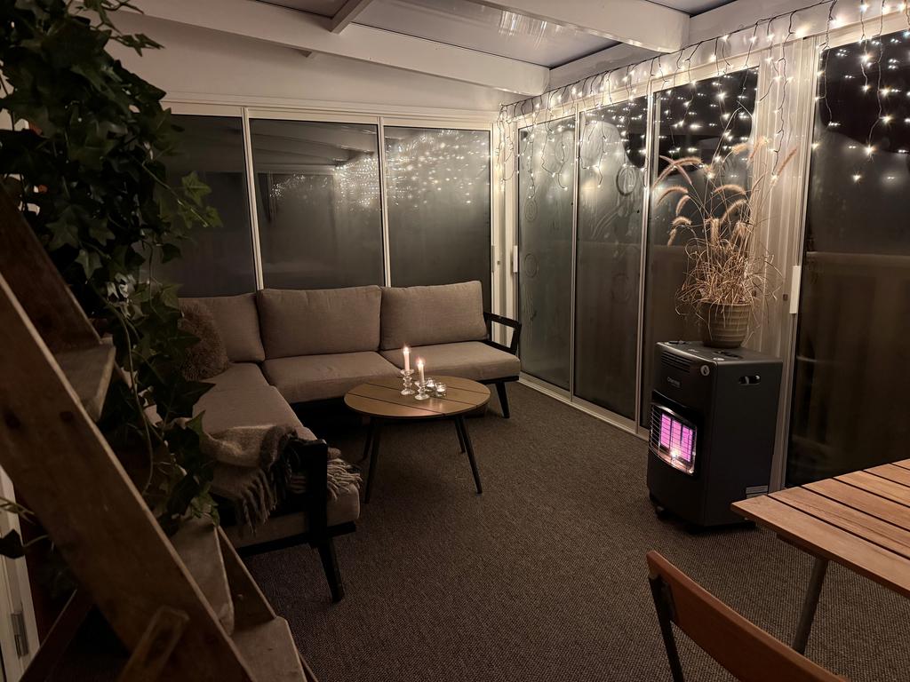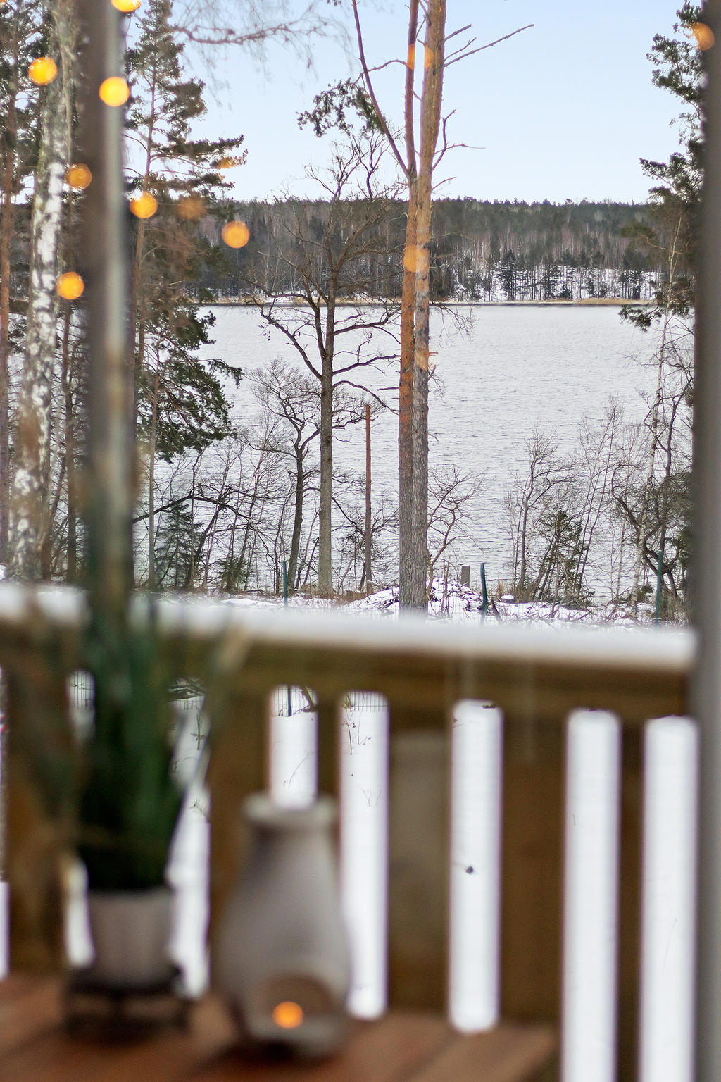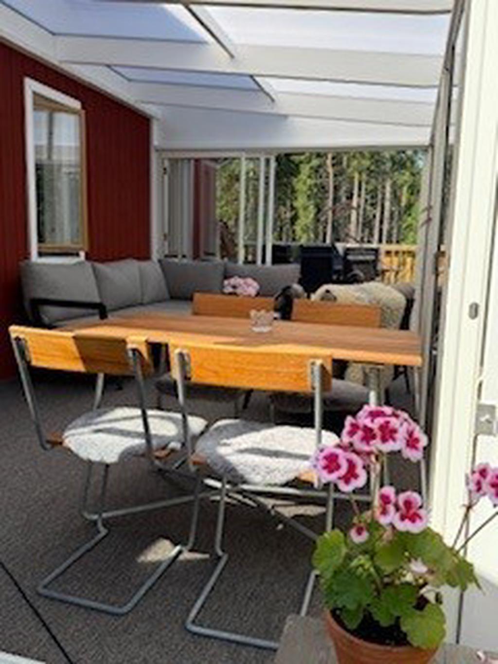 Den inglasade altanen har varit vårt favoritställe året om och även lockat våra grannar till en fika.