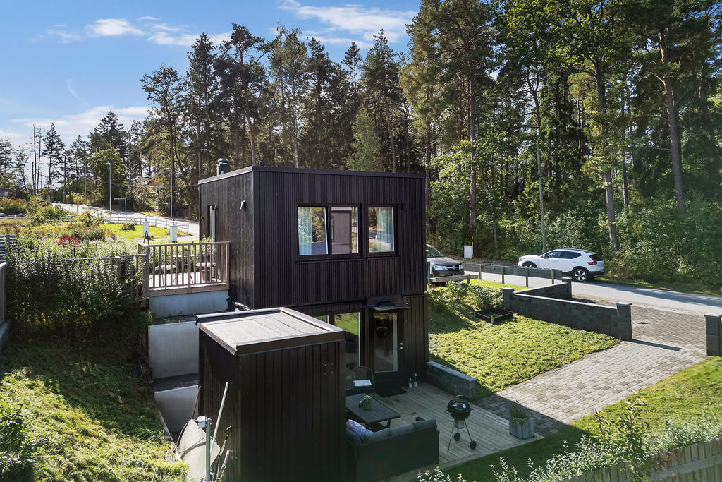 Modern minivilla med två uteplatser!