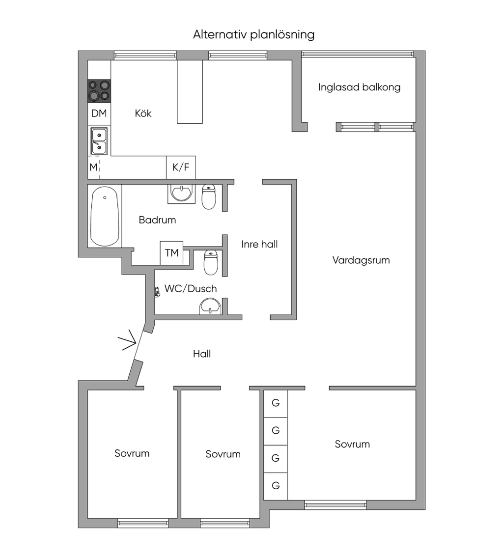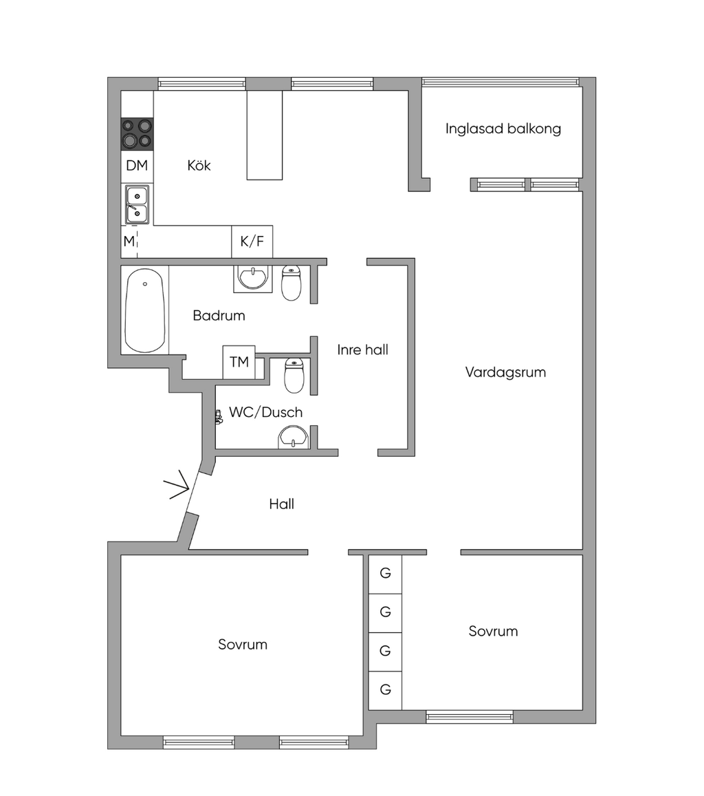 Flexibel och rymlig 3:a med två badrum, balkong och möjlighet att skapa en 4:a!