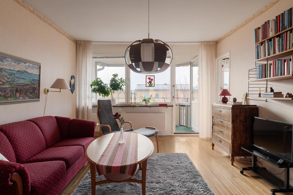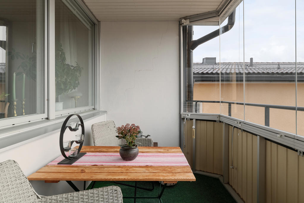 Stilfull trea på Utgårdsvägen 44 – Smakfullt med en solig balkong högst upp i huset