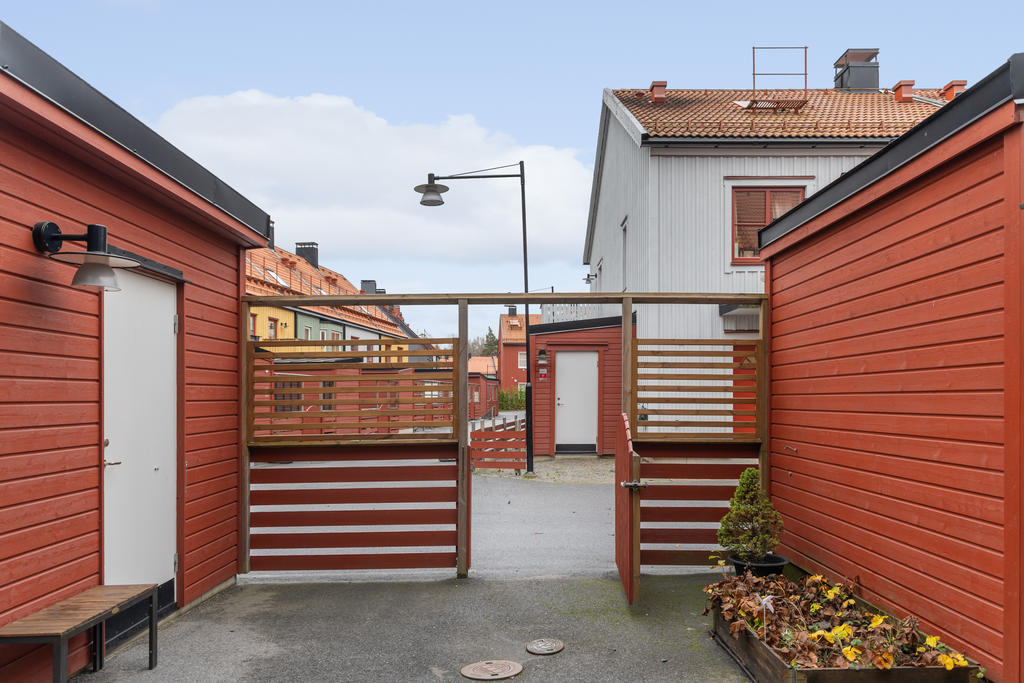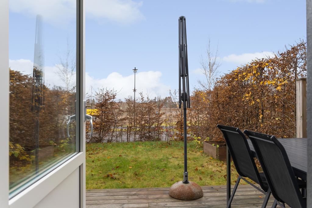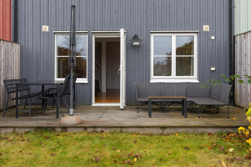 Att ha möjlighet att ta en nypa frisk luft direkt utanför dörren är något som uppskattas av många, och den här bostaden erbjuder inte bara en sådan möjlighet utan två. Den ena utgörs av en liten uteplats på framsidan med plats för bord. Den andra, som ligger på baksidan, är en mysig och fin altan som bjuder på trätrall, sol hela eftermiddagen och kvällen och plats för soffgrupp.