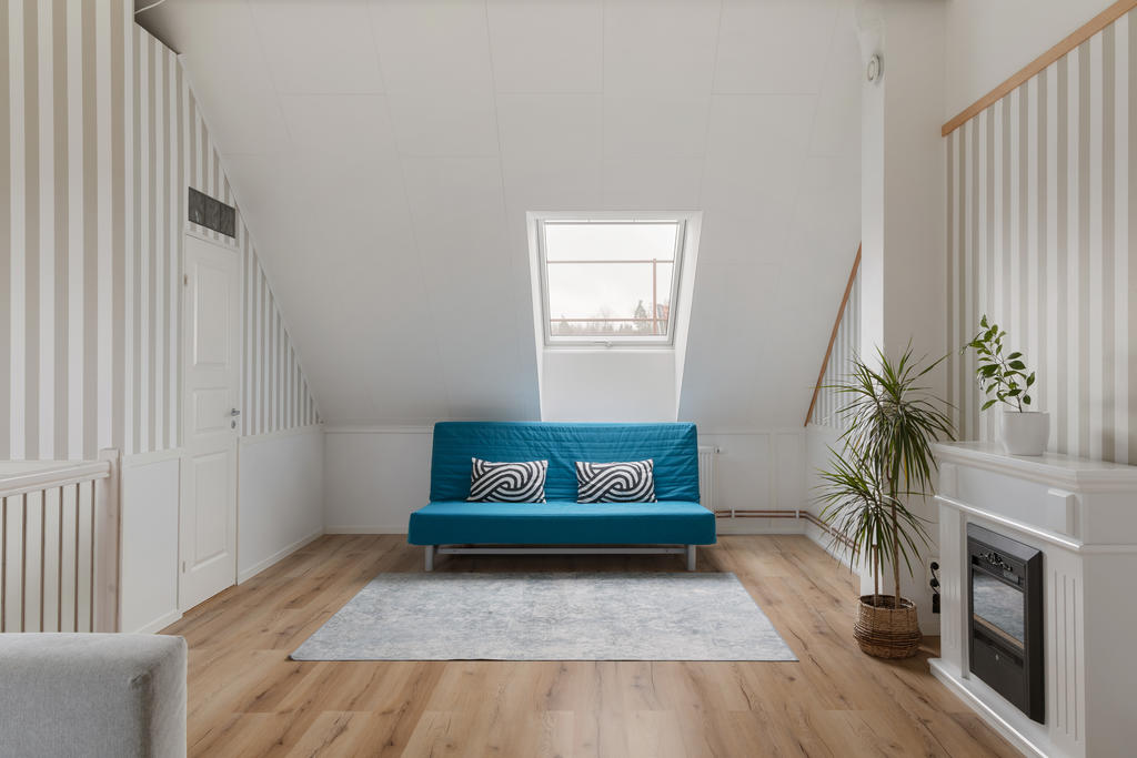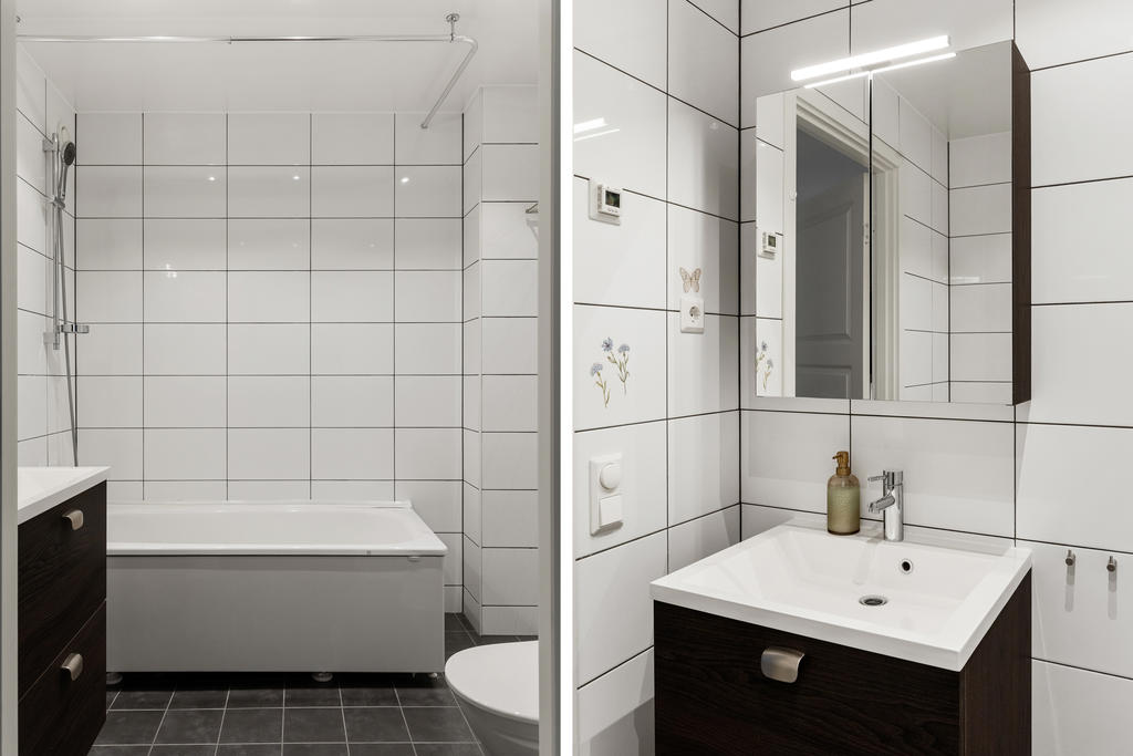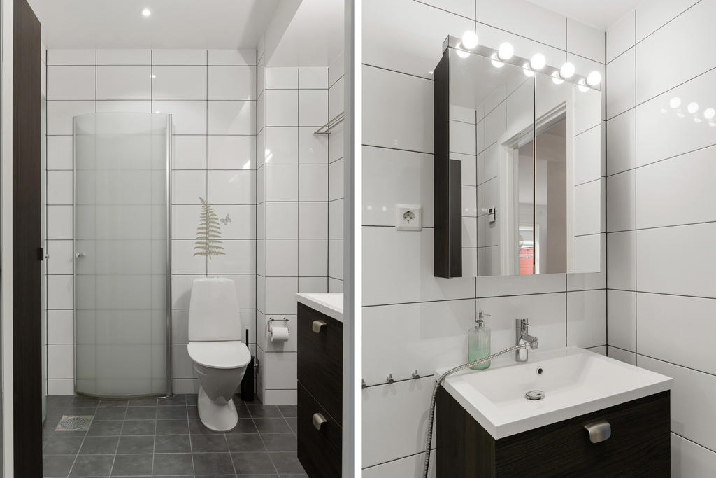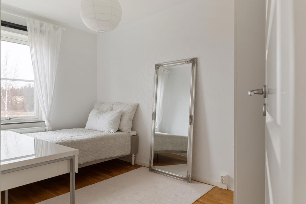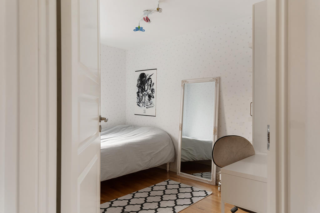 Det övre planet bjuder på hela fyra sovrum, utformat för familjen som behöver många rum eller önskar plats för kontor och gästrum. Master bedroom har platsbyggda garderober, vackert ljusinsläpp och plats för dubbelsäng. De tre övriga sovrummen är ljusa, charmiga och flexibla, utmärkta som barnrum, gästrum eller hemmakontor. Alla rum har ljusa väggar och ekparkettgolv som skapar en harmonisk helhet. Här finns även ett stort, fräscht badrum med vitt kakel, mörkt klinkergolv och badkar, idealiskt plats för kvällsbadet eller en stunds avkoppling.