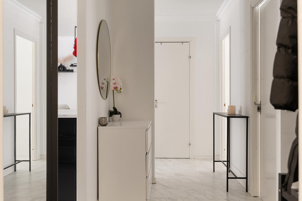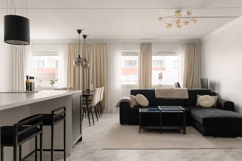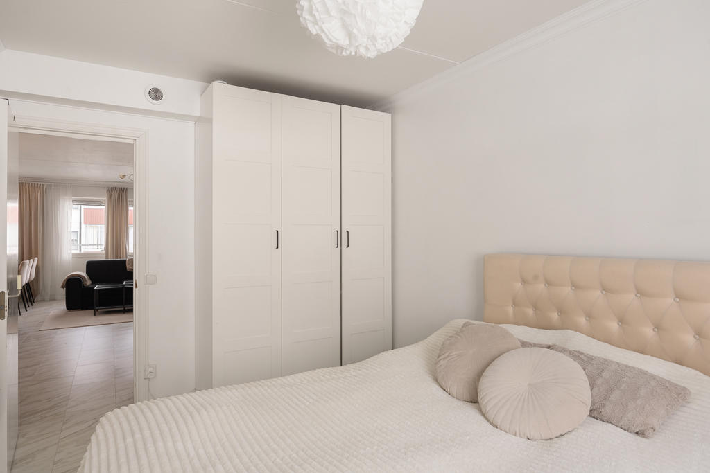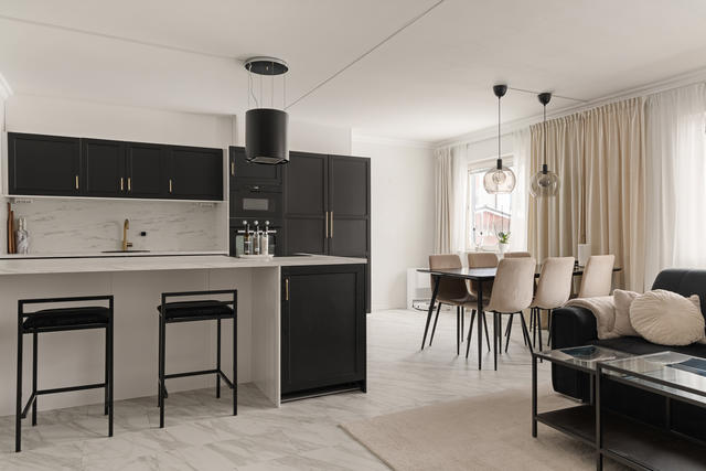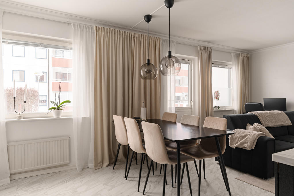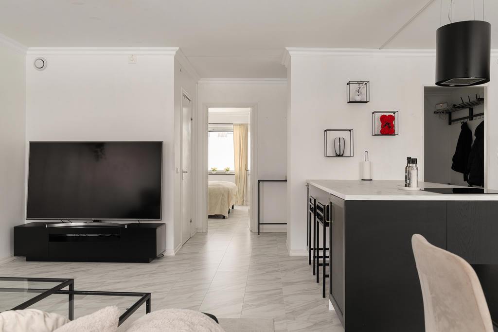 Välkommen till en social och välplanerad trea belägen i ett lugnt och trivsamt område, ett hem som kombinerar funktion, rymd och en inbjudande atmosfär. Redan i den välkomnande hallen möts du av goda avhängningsmöjligheter för ytterkläder och skor, vilket ger ett praktiskt och ordnat första intryck. Vidare öppnar bostaden upp sig mot ett generöst vardagsrum med öppen planlösning mot köket, perfekt för både vardagsliv och umgänge. Köket är välplanerat och i mycket fint skick, med en gedigen köksö som blir en naturlig samlingspunkt. Här finns gott om arbetsytor och den maskinella utrustningen består av spis, kyl/frys och diskmaskin. Invid fönstret ryms ett större matbord där härliga måltider kan avnjutas i ett fantastiskt ljus från de stora fönsterpartierna som skänker rummet både rymd och liv. Från vardagsrummet nås den inglasade balkongen med plats för utemöbler och utsikt över föreningens lugna och välskötta innergård. En perfekt plats för avkoppling, sociala stunder och för att förlänga sommaren oavsett väder. Intill vardagsrummet finns även en rymlig klädkammare som erbjuder utmärkta förvaringsmöjligheter. Bostaden disponerar två sovrum i bra storlek. Det större sovrummet nås från hallen och erbjuder gott om plats för både dubbelsäng och förvaring, medan det andra sovrummet också rymmer säng, förvaring och har en trivsam och harmonisk känsla, perfekt som barnrum, gästrum eller hemmakontor.