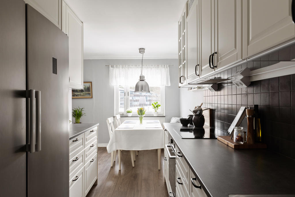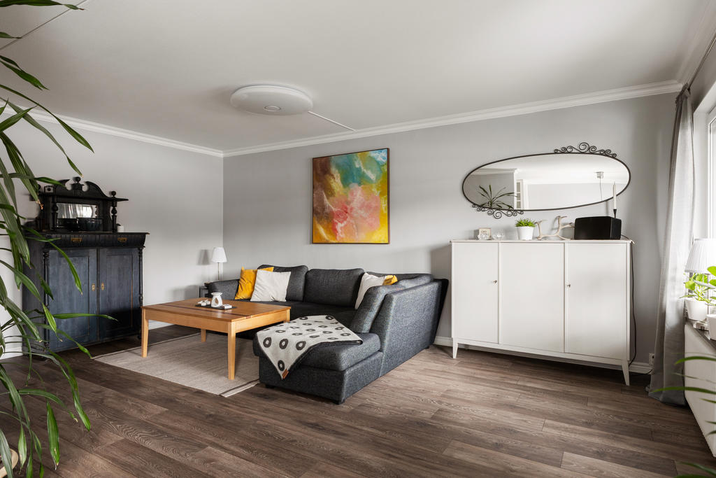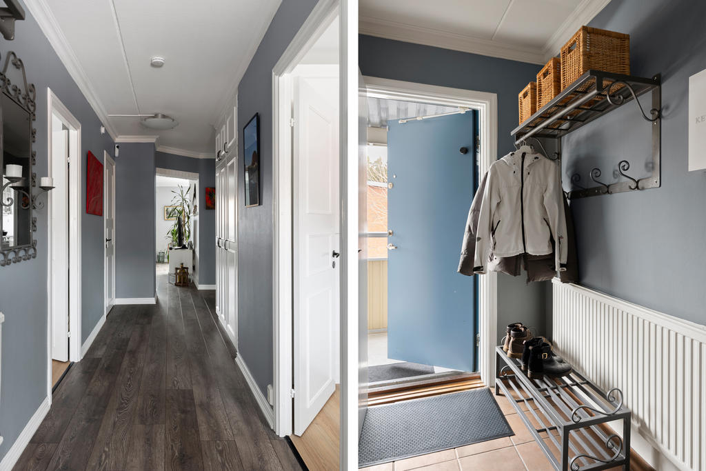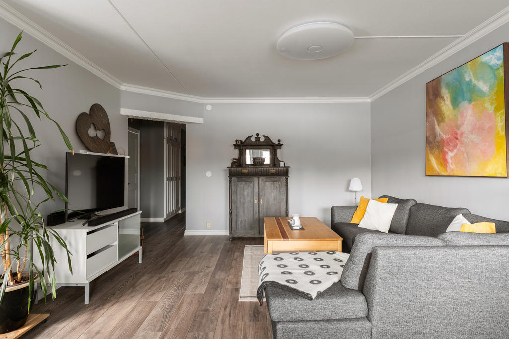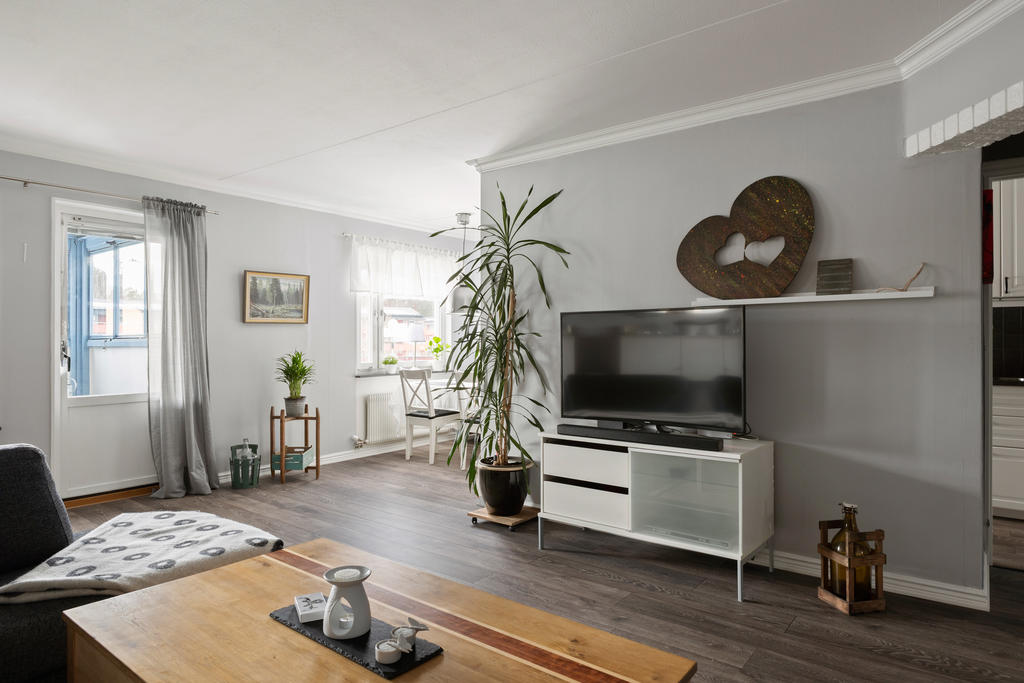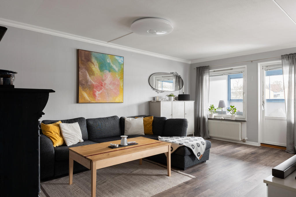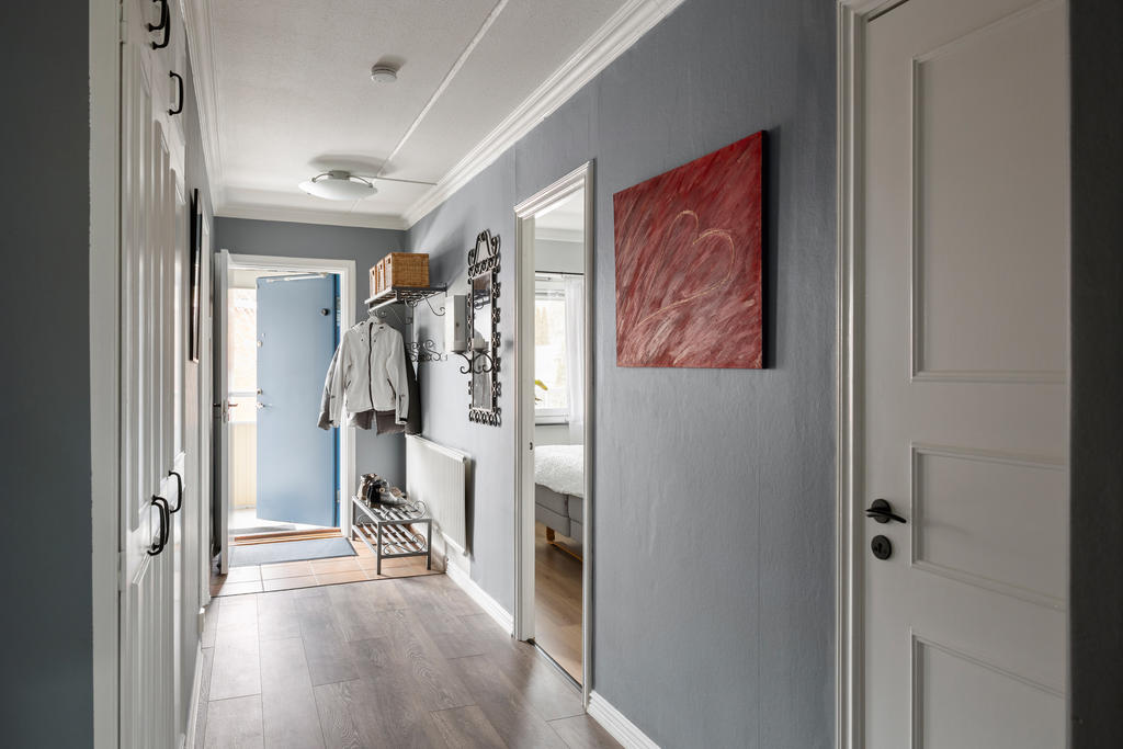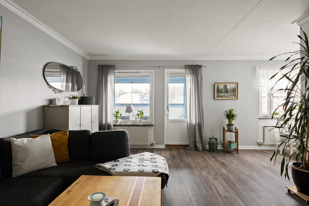 Högst upp en våning upp finner du denna pärla om 77 kvm som kombinerar komfort, funktion och livskvalitet på bästa sätt. Här bor du bekvämt med en social planlösning som bjuder in till umgänge. Lägenheten är i fint skick, det är bara att flytta in och börja trivas direkt. Redan vid ankomst möts du av en välkomnande hall med gott om plats för avhängningsmöjligehter. Det stilrena och nyligen renoverade köket i social planlösning blir hemmets naturliga samlingspunkt. Här finns gott om förvaring i skåp och lådor, generösa arbetsytor samt full maskinell utrustning, perfekt för både vardagsmatlagning och festliga tillställningar. Vid fönstret finns en självklar plats för matbord. Vardagsrummet är rymligt och lättmöblerat med plats för soffgrupp, tv-möbel och extra möblemang. Från vardagsrummet når du den inglasade balkongen som förlänger bostadens funktionalitet. Tack vare inglasningen blir balkongen som ett extra rum som kan nyttjas från tidig vår till sen höst, idealiskt för middagar, fikastunder eller lugna kvällar. Bjuder på gott om plats för utemöbler, grill och växter. Lägenheten erbjuder på två större sovrum med plats för dubbelsäng och förvaring. Det mindre rummet finns gott om plats för större säng och möjlighet till enklare möblemang. Utöver detta finns ett praktiskt förråd i bostaden som underlättar förvaringen. Det smakfullt renoverade badrummet är i toppskick och har genomgått stambyte. Här möts du av modern design med vägghängd wc, stilren kommod och dusch med vikbara glasväggar. Självklart finns även tvättmaskin som förenklar vardagens bestyr.