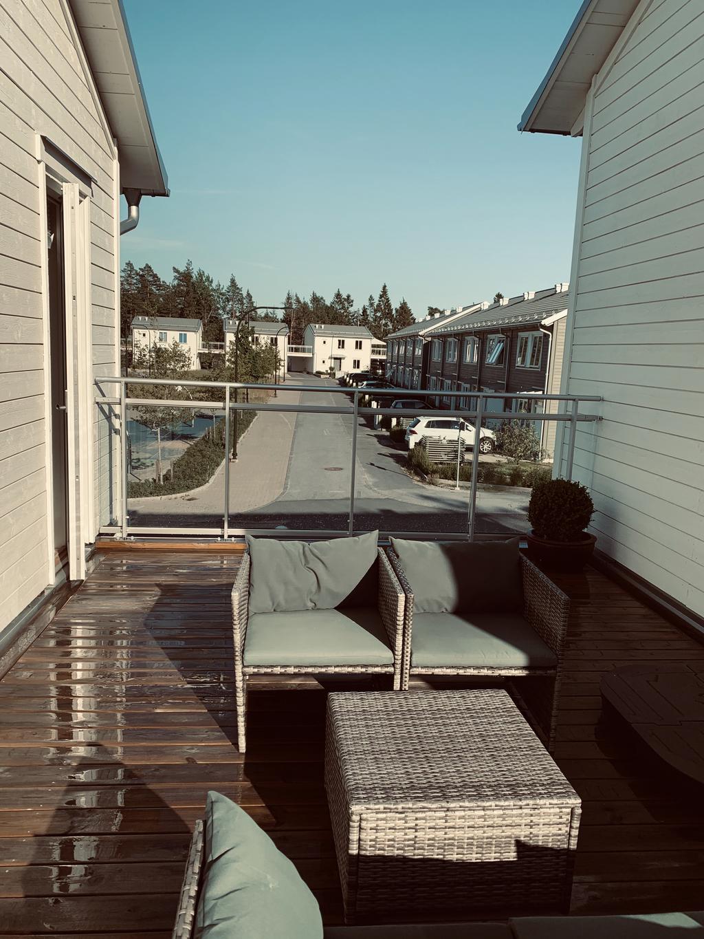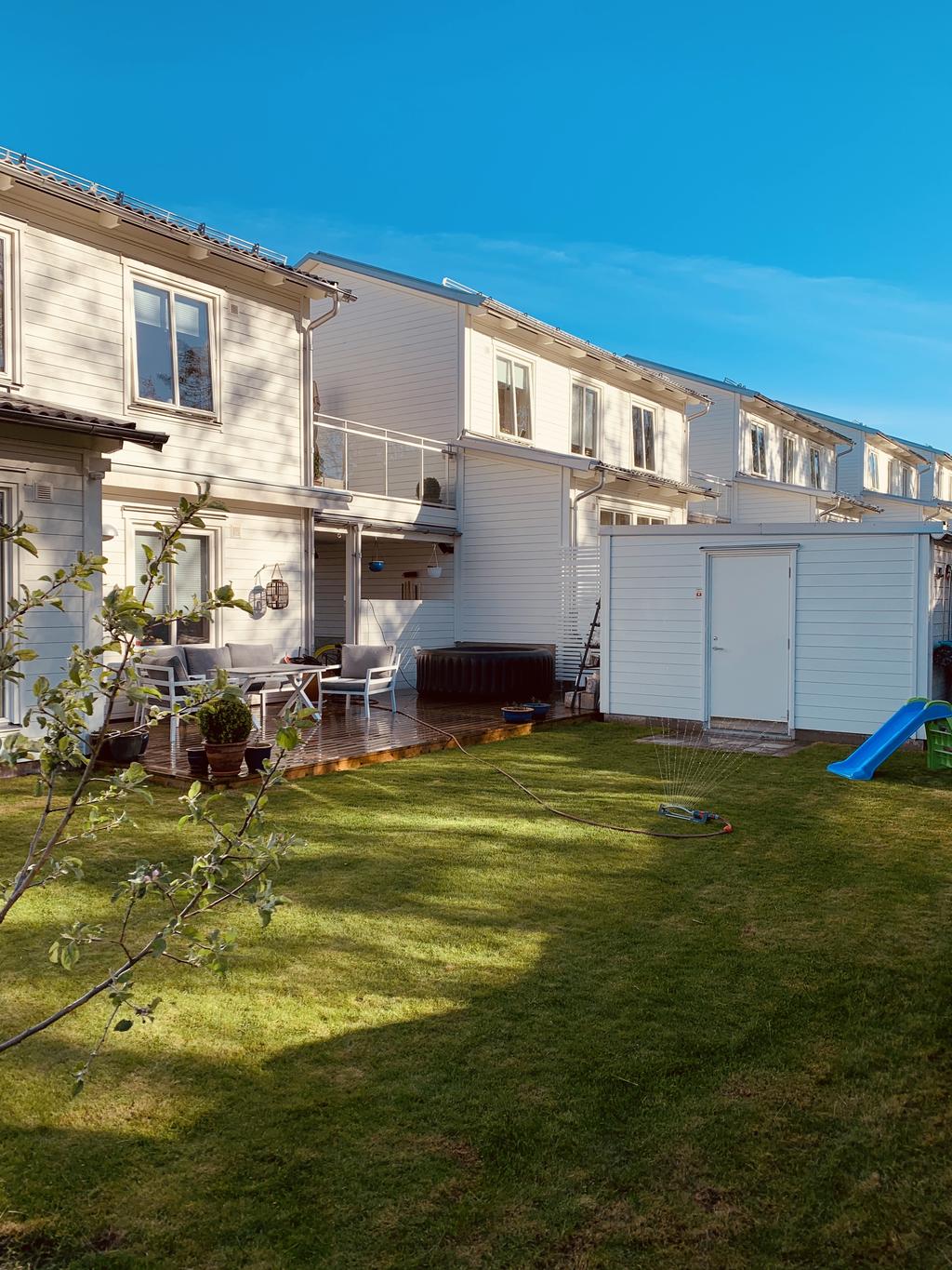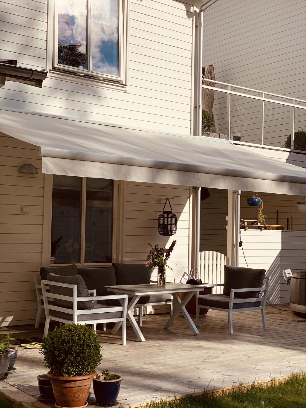 Terassen erbjuder många möjligheter för alla i familjen att umgås. Hängmattorna under sommaren är ett måste. Altanen, gräsmattan och vår spa pool har gett oss många skratt och lekfulla stunder.