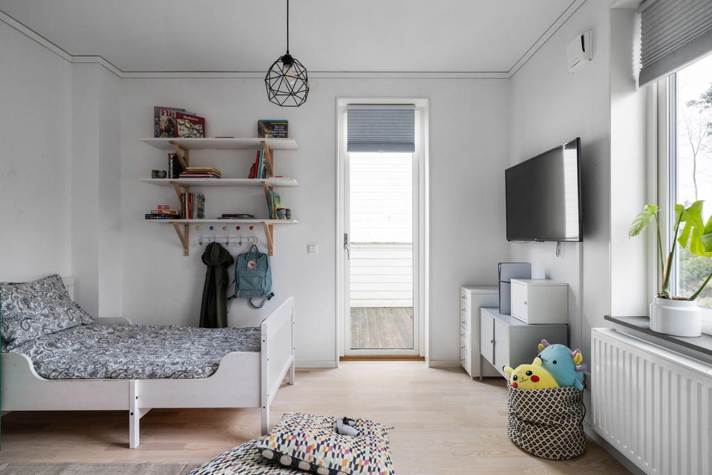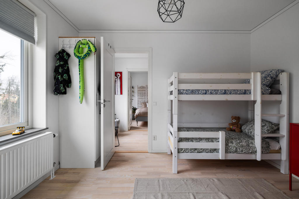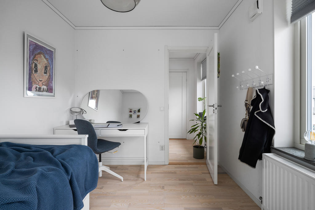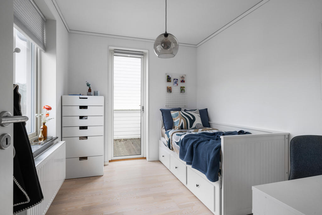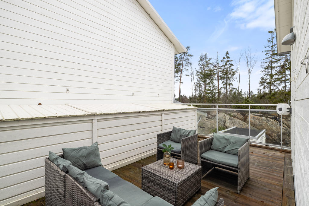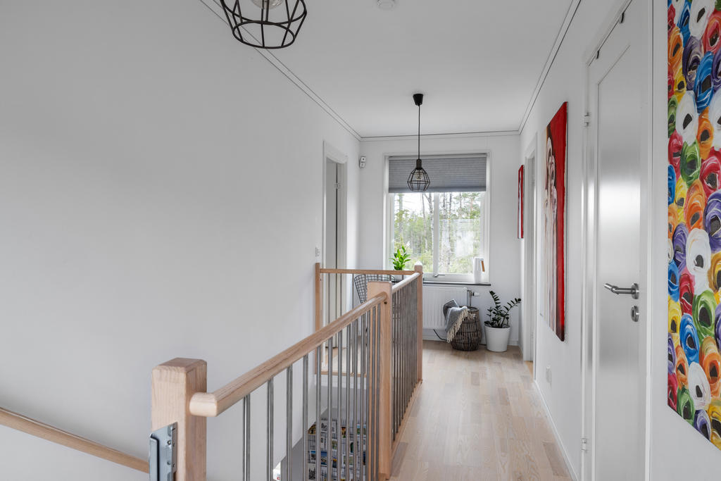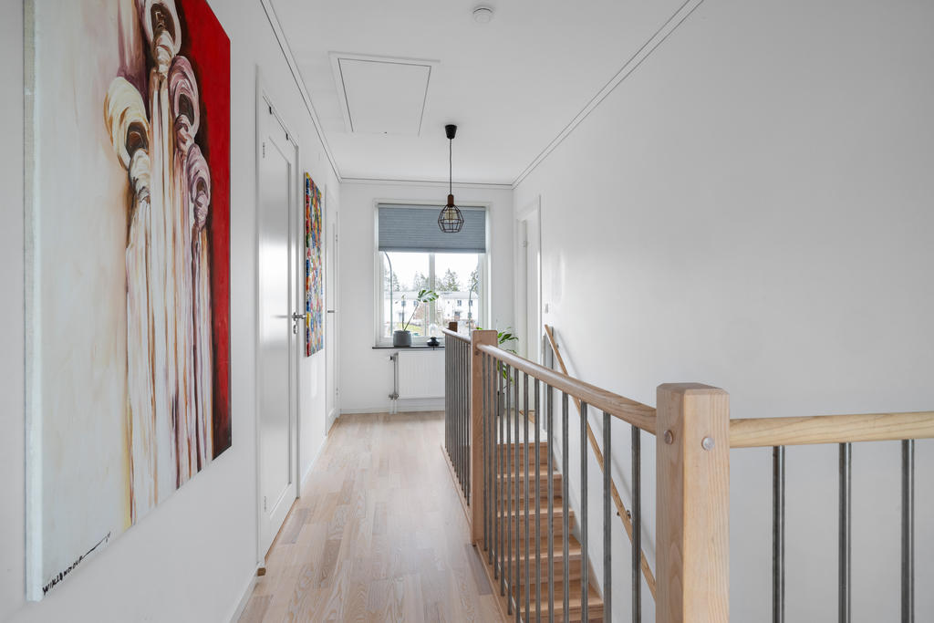 Övre plan erbjuder hela tre fina sovrum med plats för säng och förvaring. Samtliga med känsla för inredning och utan insyn. Här finns även utgång till den stora terrassen. En magisk plats med storlek och generösa soltimmar. Självklart finns även här ett praktiskt och snyggt badrum på övre plan samt en walk in closet.