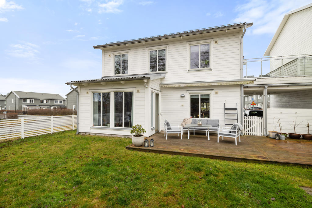 Gavelrradhus med stor tomt mot natur. Sällan till salu. I populära Vega finns det fantastiska kedjehus med alla rätt. På fin gata med många barnfamiljer ligger huset med mycket bra gavelläge. Här finns carport och plats för flera bilar. Den större tomten med privat baksida erbjuder plats för barnlek och optimalt solläge så att du kan njuta av att vara ute.