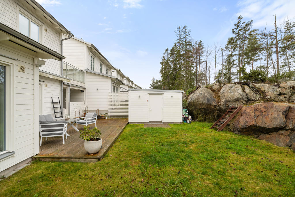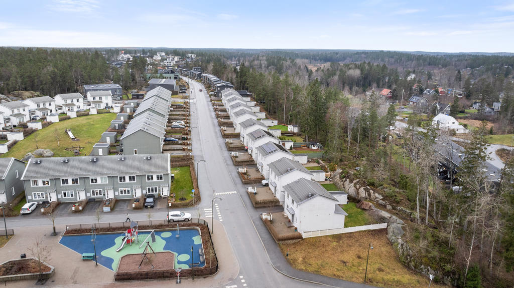 Närområdet erbjuder allt man som barnfamilj kan tänkas behöva. Här finns fantastiska grönområden, naturreservat och badplats. Självklart finns det skola och förskola på lagom promenadavstånd. Runt hörnet håller den nya Vegastaden på att byggas upp. Här finns den nya pendeltågsstationen Vega med pendeltåg som tar dig smidigt och snabbt till Stockholm City. Vid stationen finns det flera restauranger, butiker och matbutiker. I Vegastaden finns det flera förskolor och skola. Bra placerade så att du kan lämna barnen på vägen till pendeltåget. Det är även nära till Handen centrum, Port 73 och Länna handelsplats. Resan med bil in till Stockholm City tar ca 20 minuter.